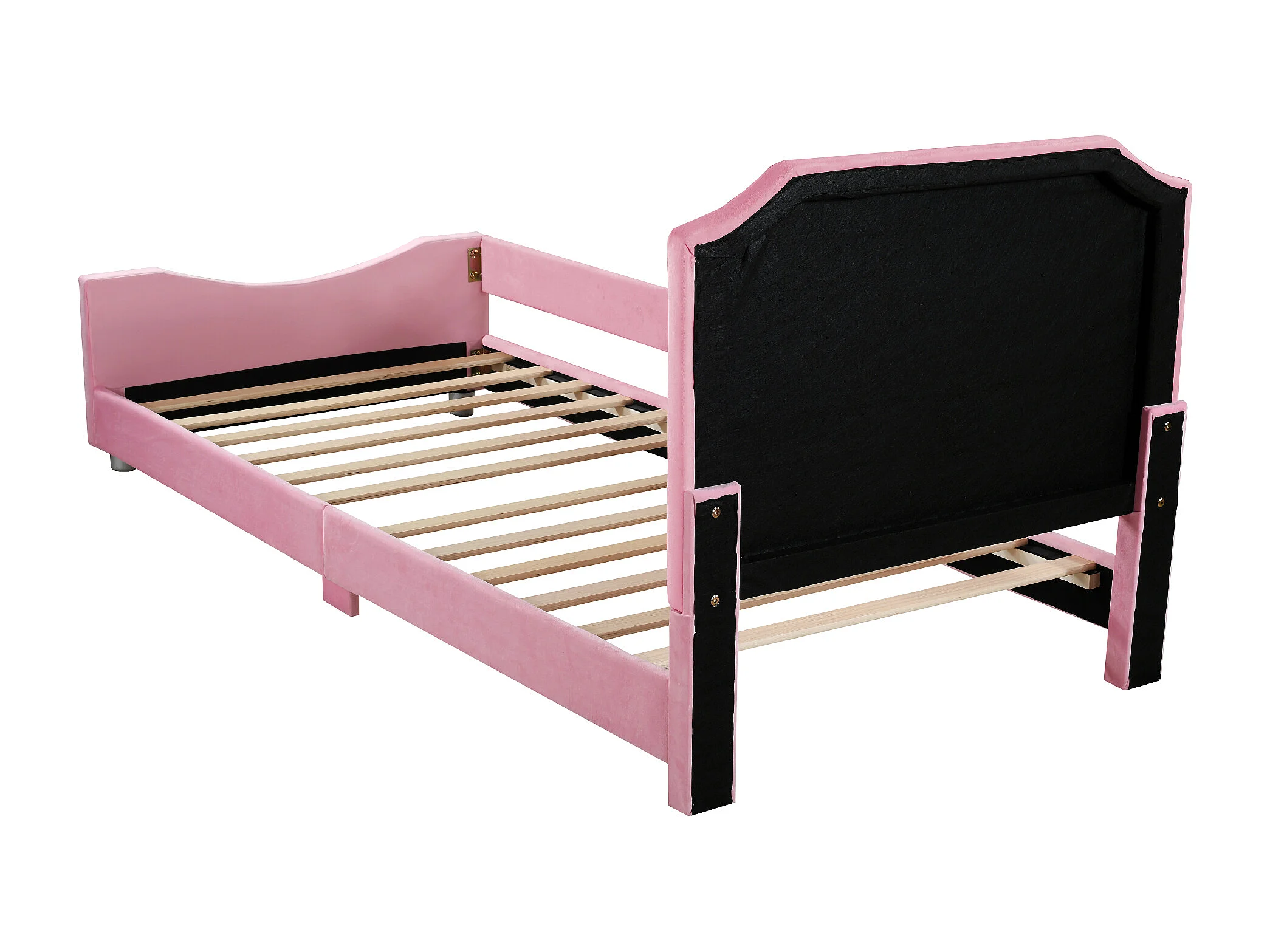 Lit enfant 90x200cm avec Dossier et accoudoirs Sommier à lattes en rose pour enfants et adolescents