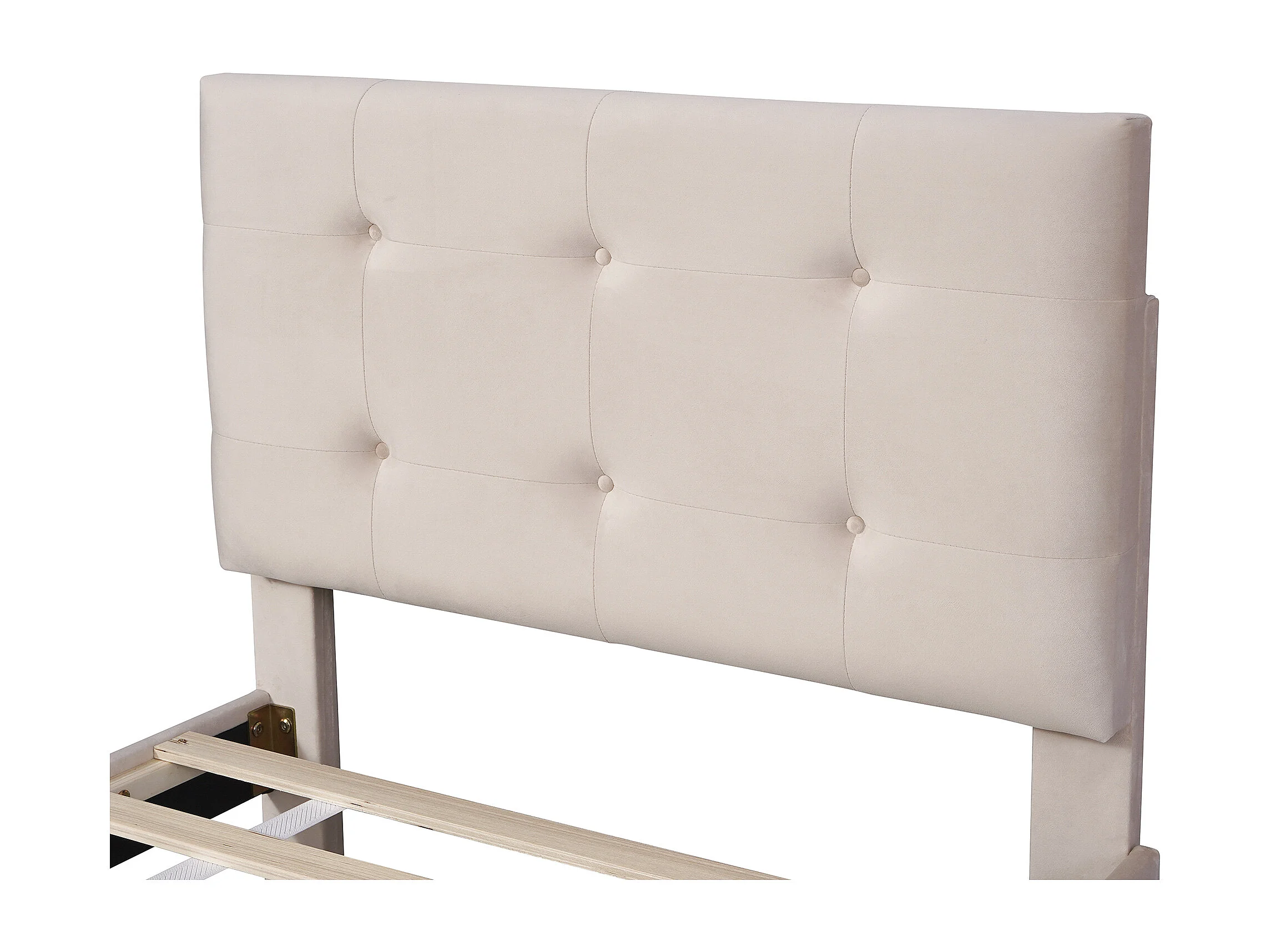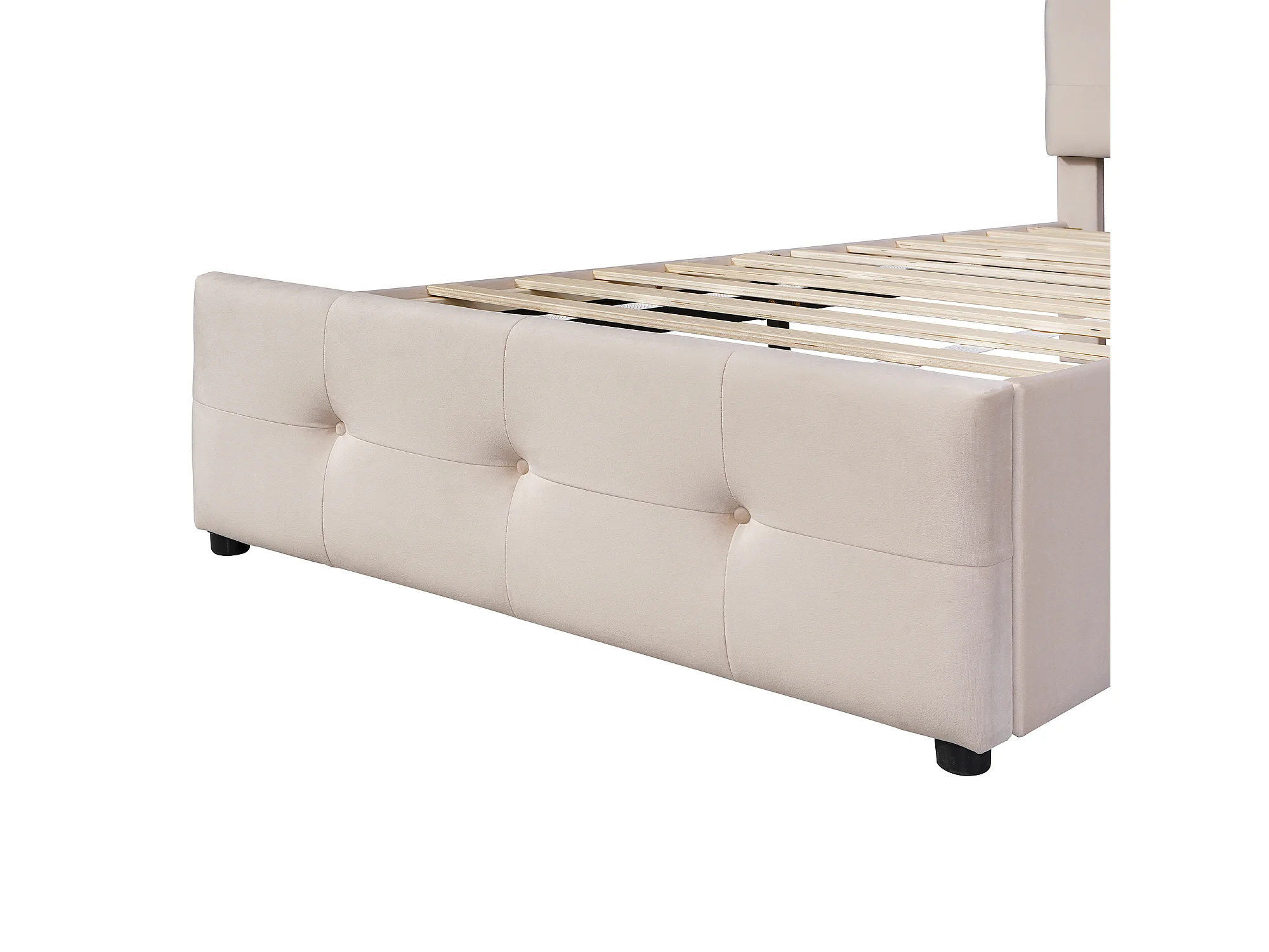 Lit enfant 90x200cm avec sommier à lattes et une tête de lit et deux tiroirs beige pour enfants et adolescents