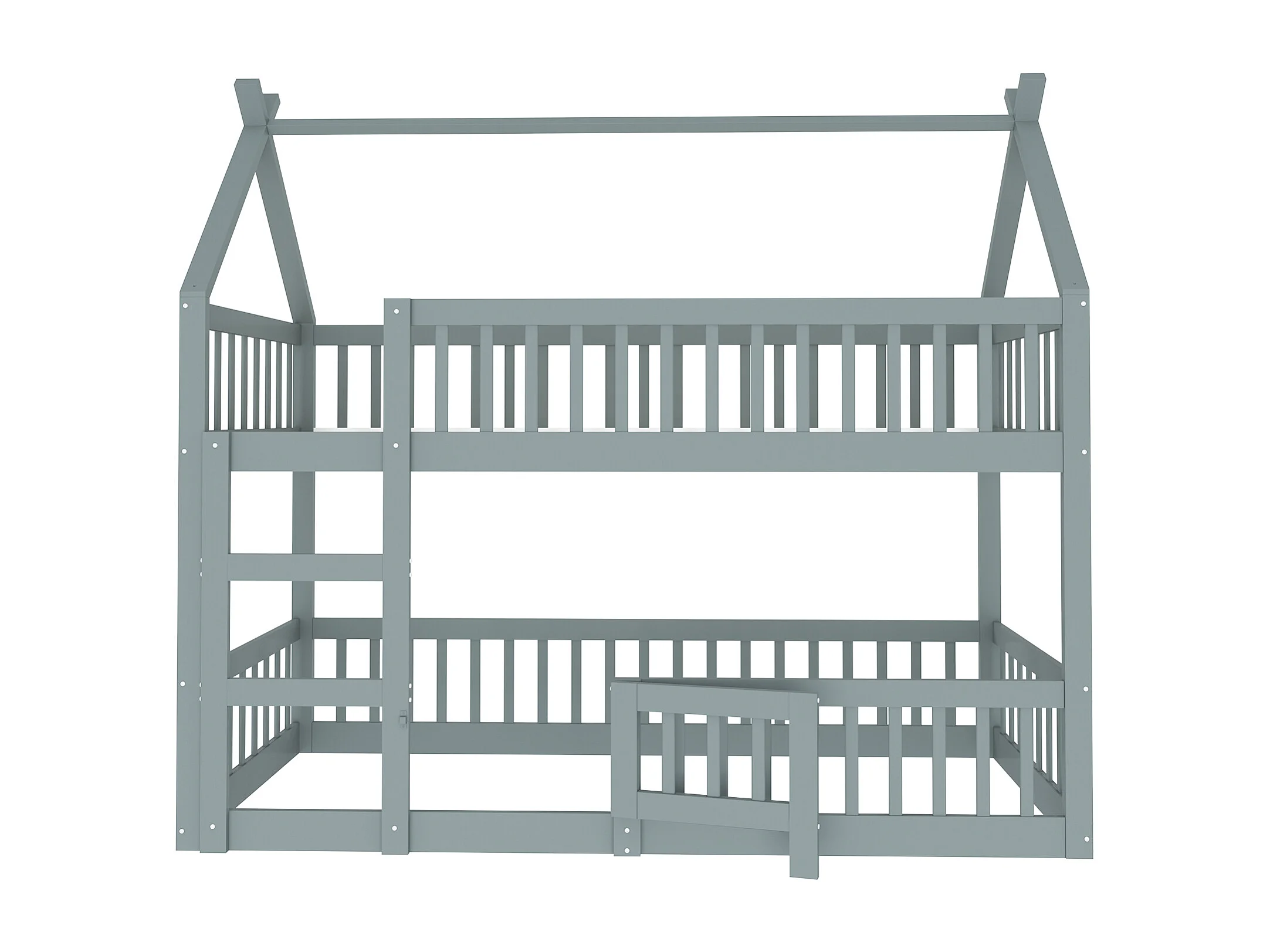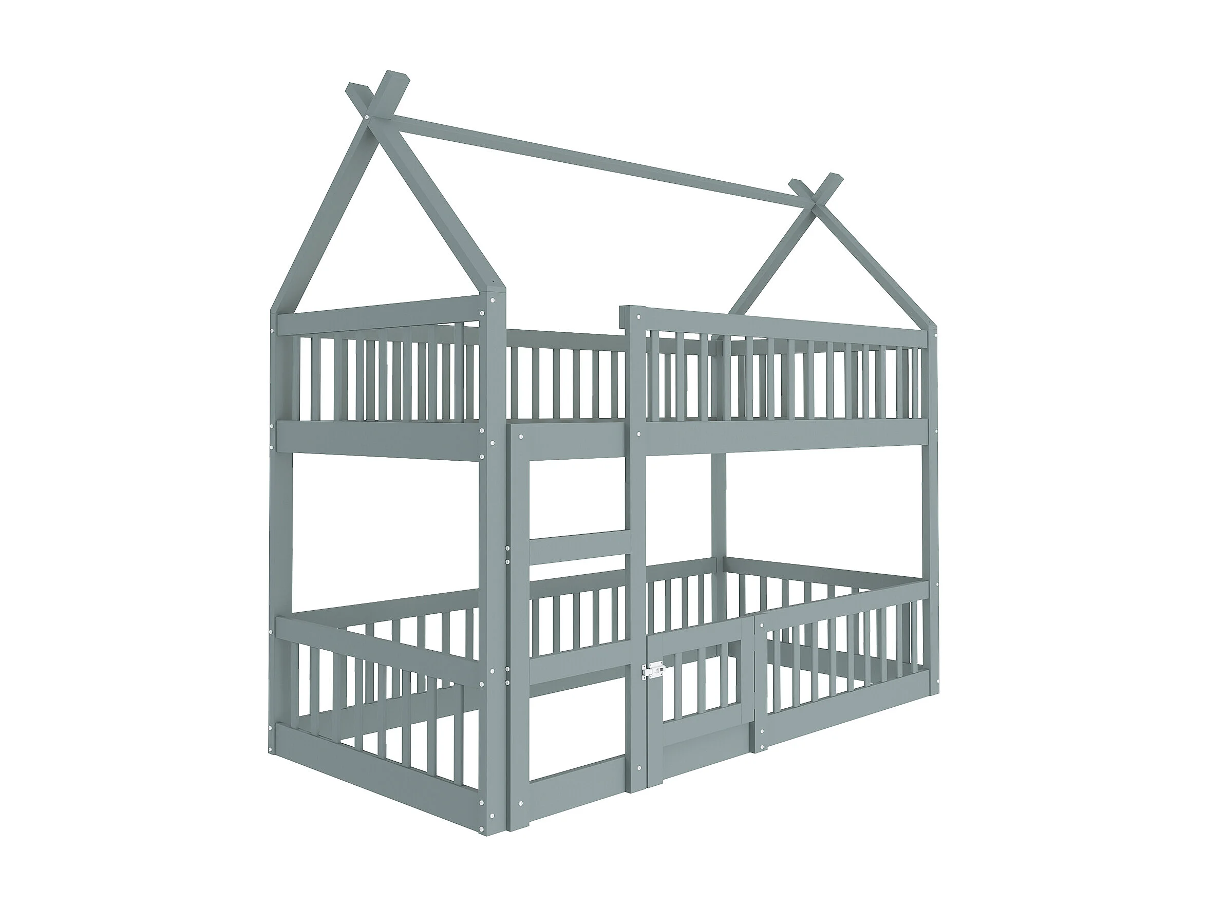 Lit enfants - 90 x 200 cm - Lit superposé haut-bas avec barrières hautes et porte ouvrante, Escalier intégré, En Bois+Métal, Sans matelas - Gris