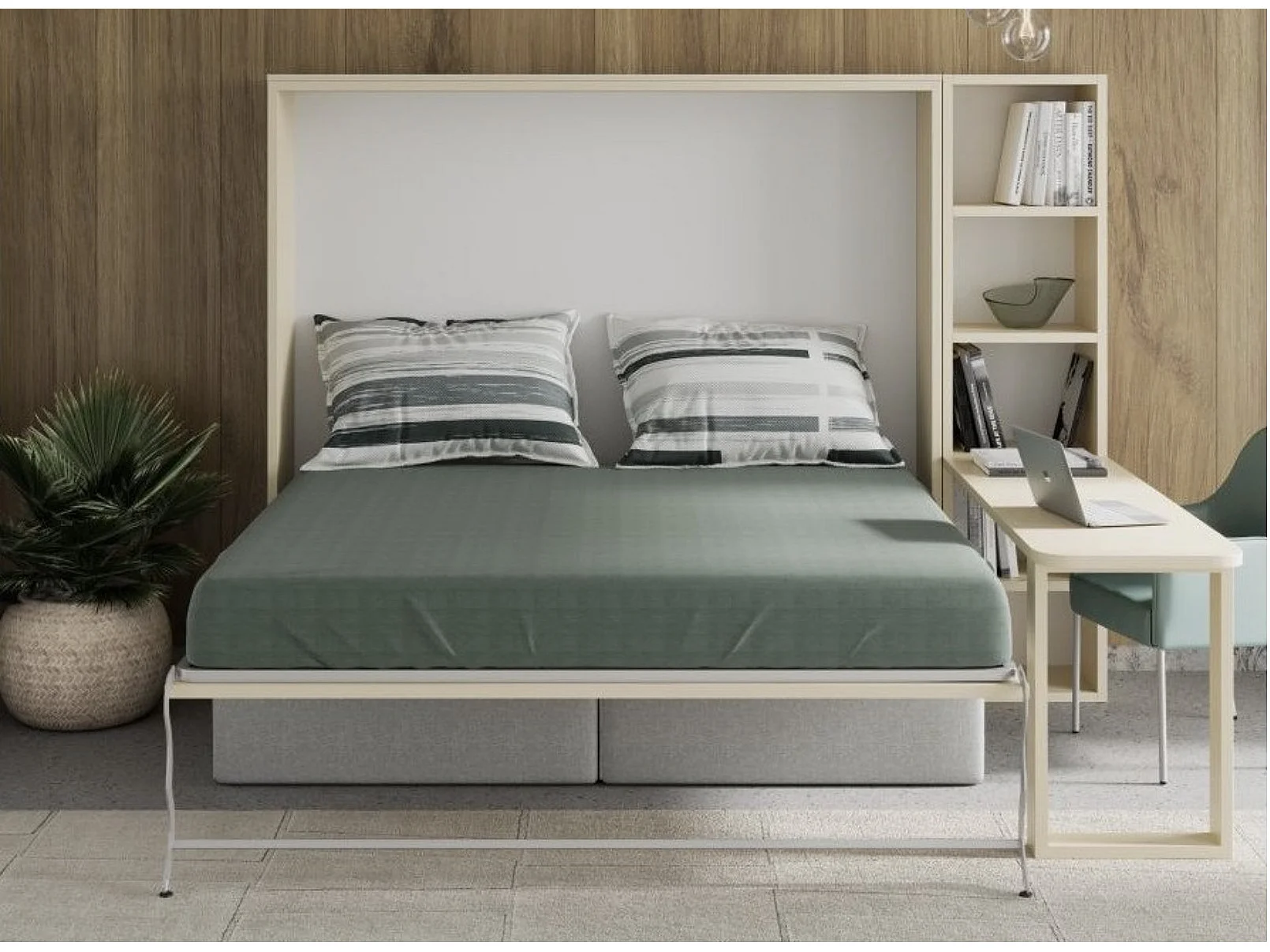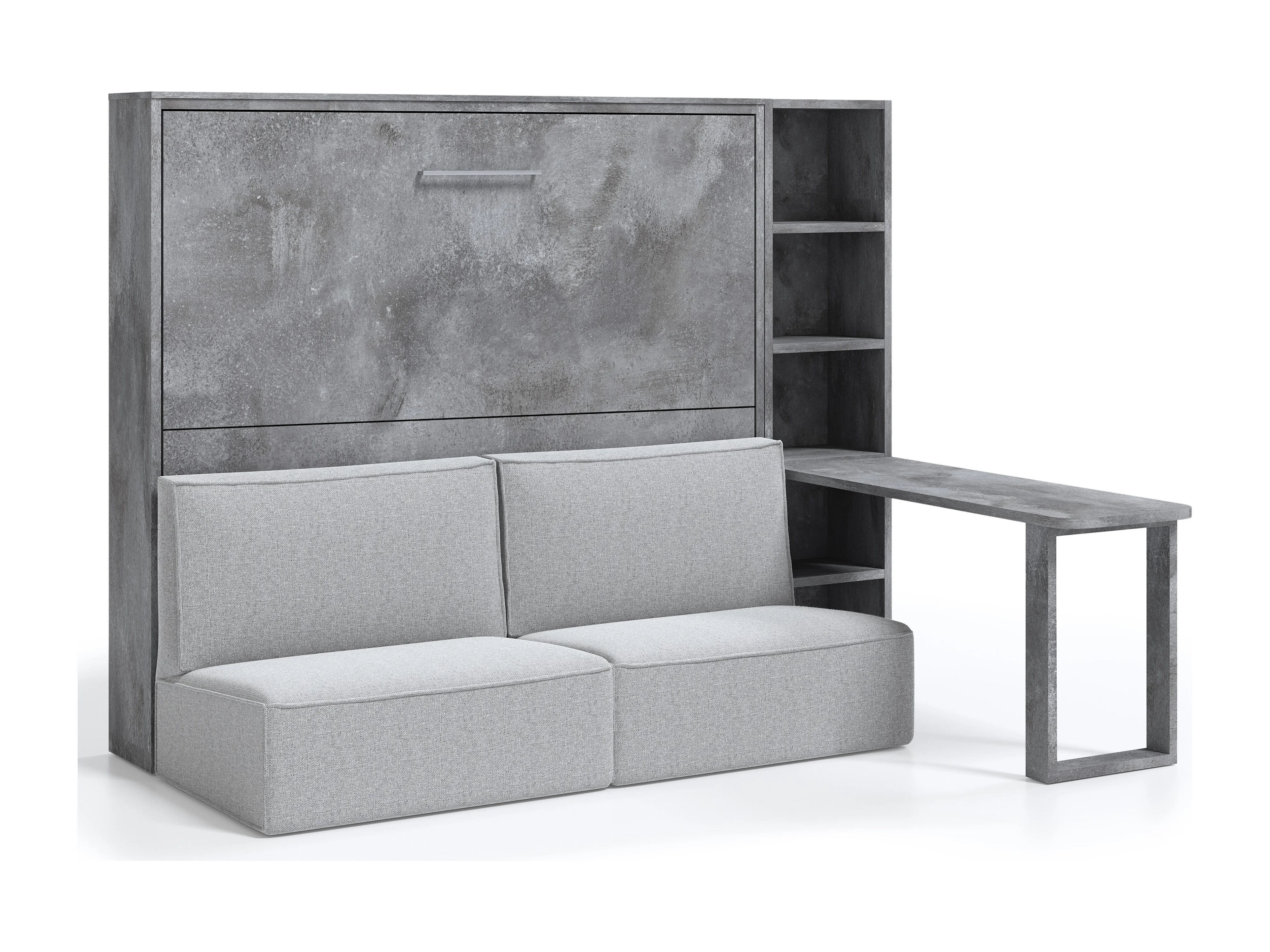 Lit escamotable horizontal 140x200 Prolok-Canapé Noir-Avec étagère-Structure Blanche