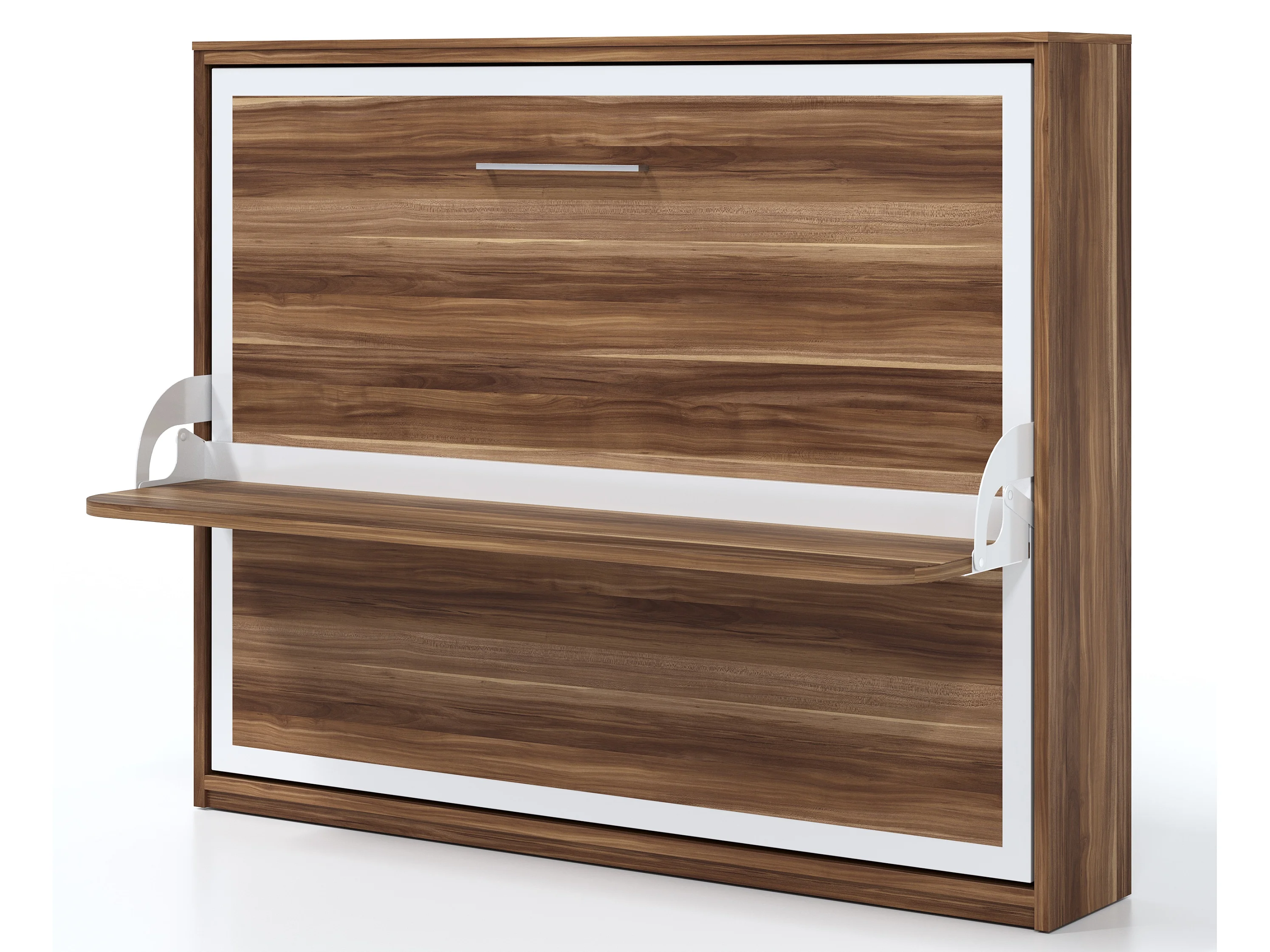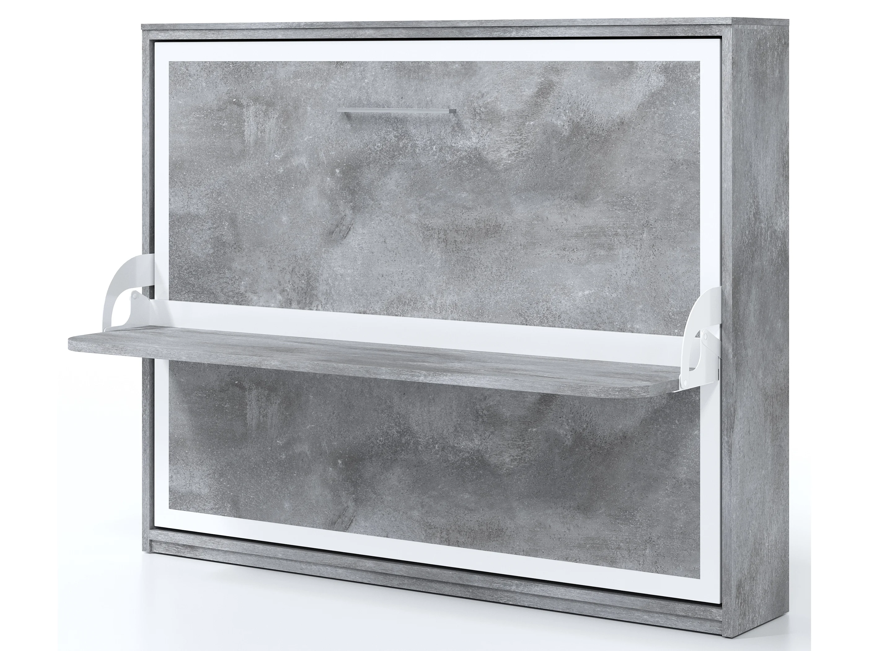 Lit escamotable horizontal 90x190 avec bureau Bona-Avec matelas-Cadre Gris ciment-Façade Gris ciment
