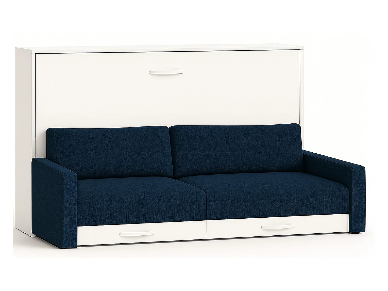 Lit escamotable horizontal avec canapé VETAL-120x200-Canapé Bleu foncé-Structure Blanche