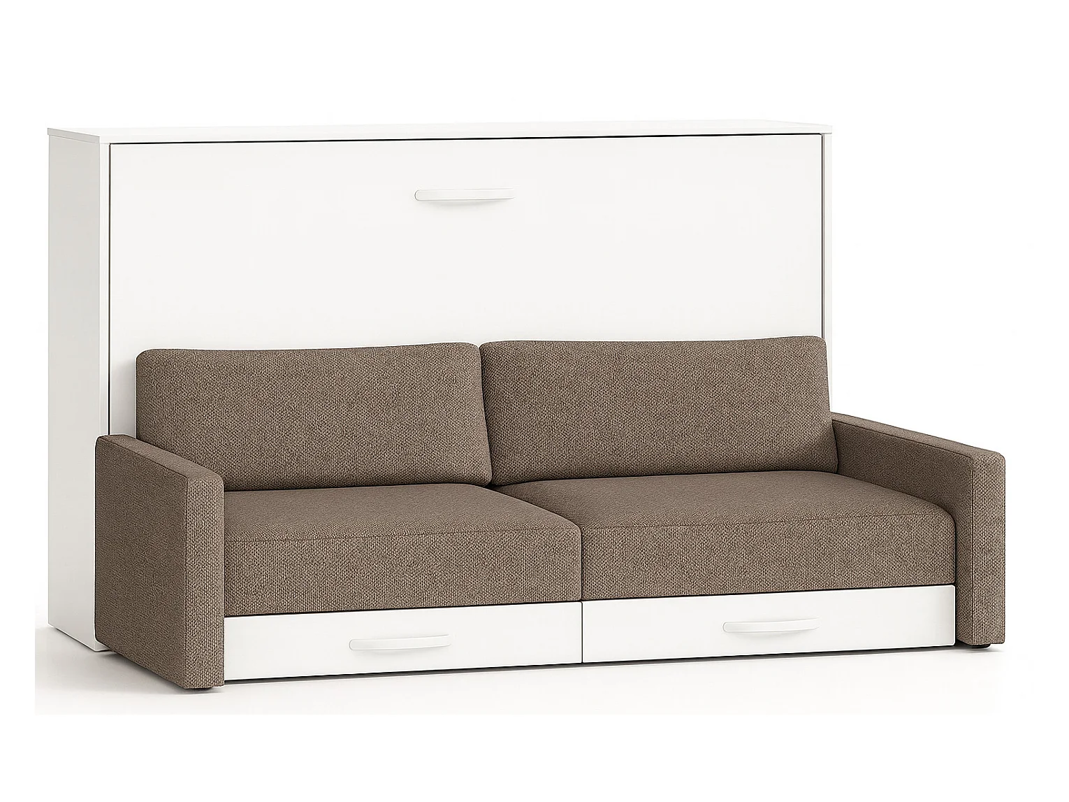 Lit escamotable horizontal avec canapé VETAL-140x190-Canapé Camel-Structure Blanche