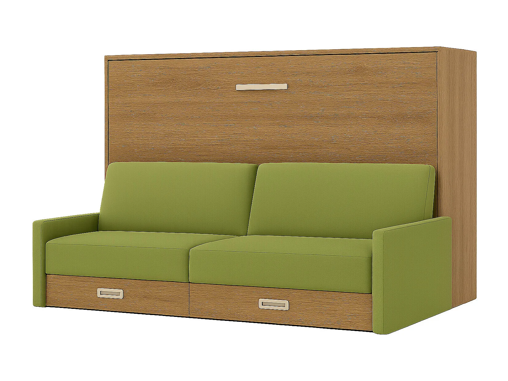 Lit escamotable horizontal avec canapé VETAL-160x200-Canapé Vert pistache-Structure Chêne clair
