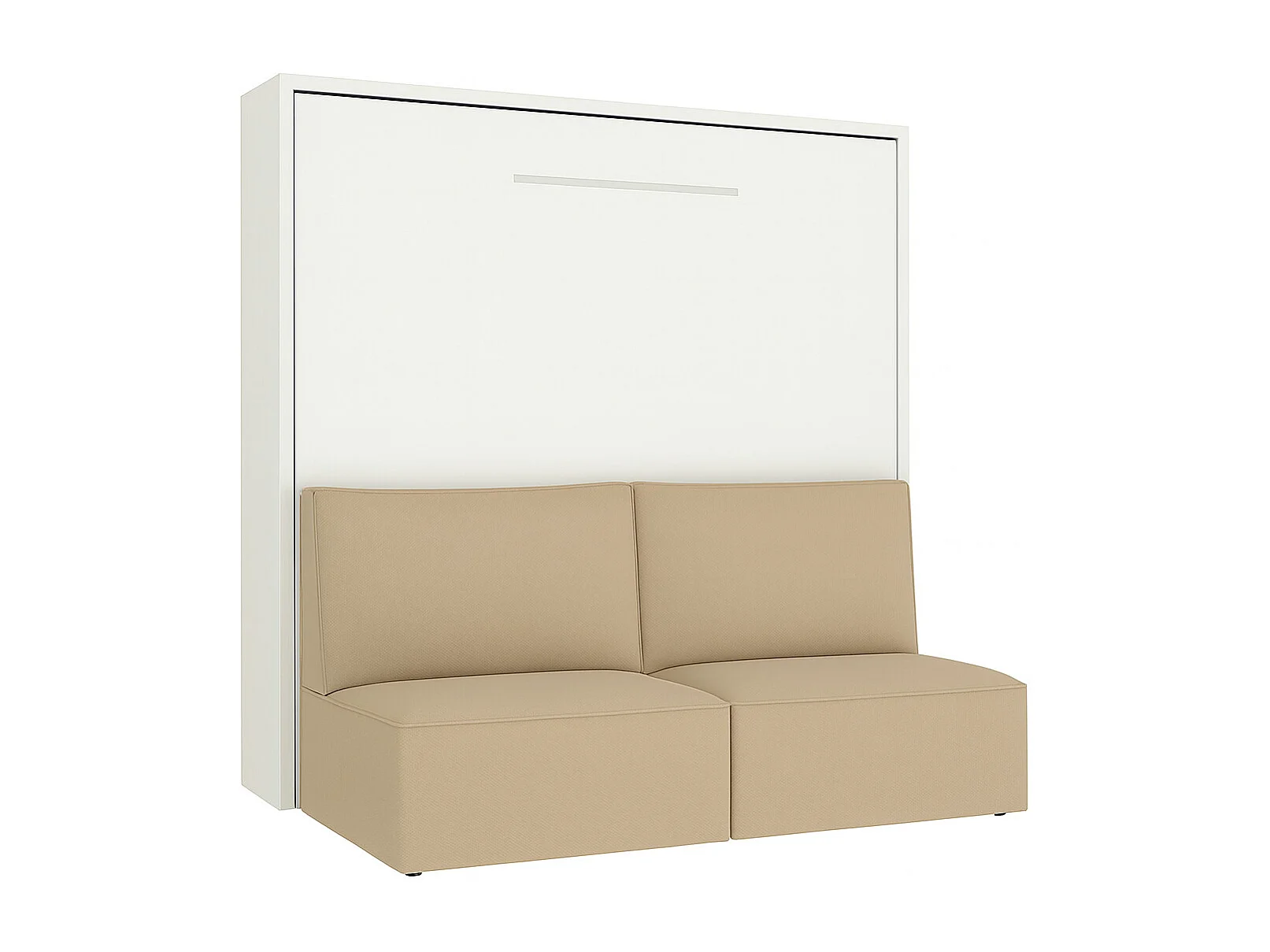 Lit escamotable horizontal LOGIA-160x200-Canapé Beige-Structure Blanche-Version lit+canapé