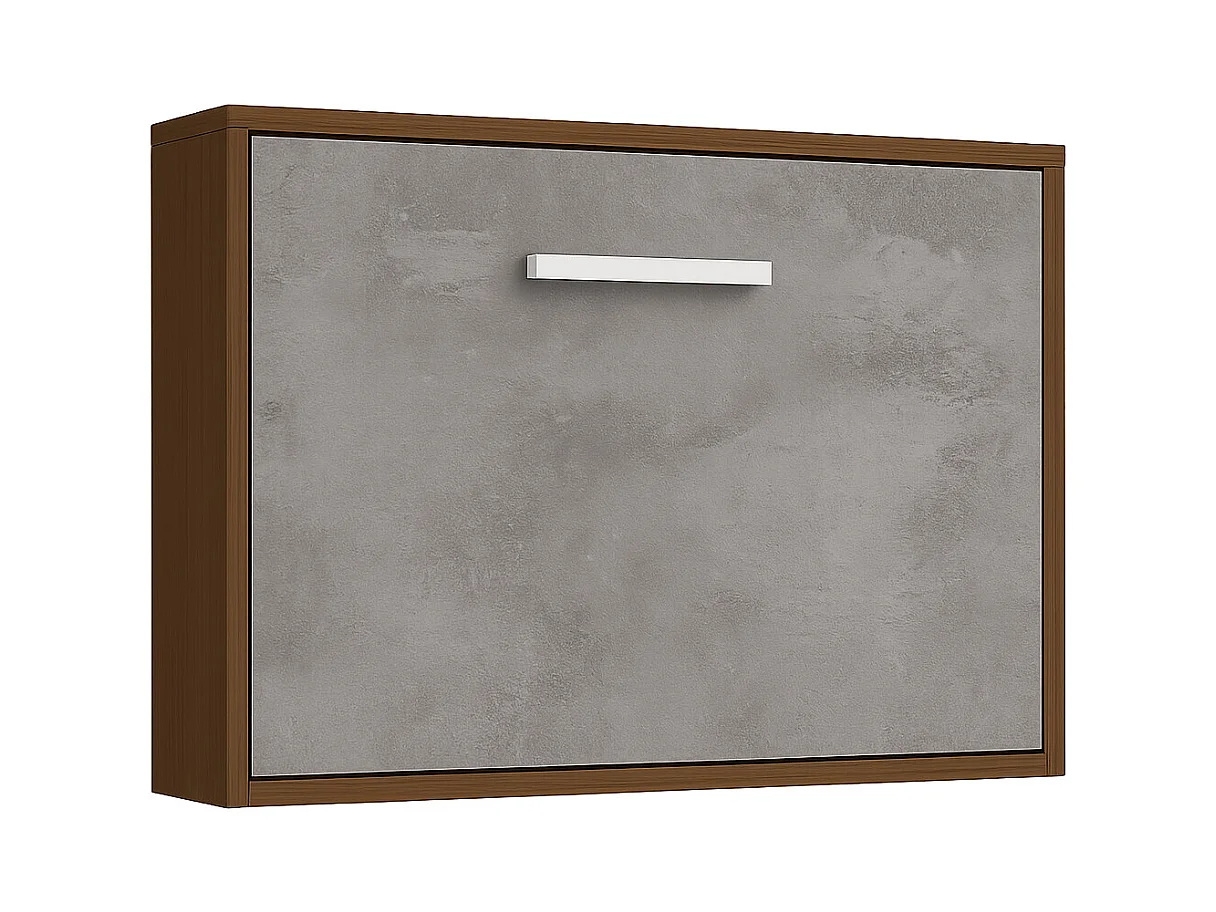 Lit escamotable horizontal OPTIMA-120x180-Cadre Frêne-Façade Gris ciment