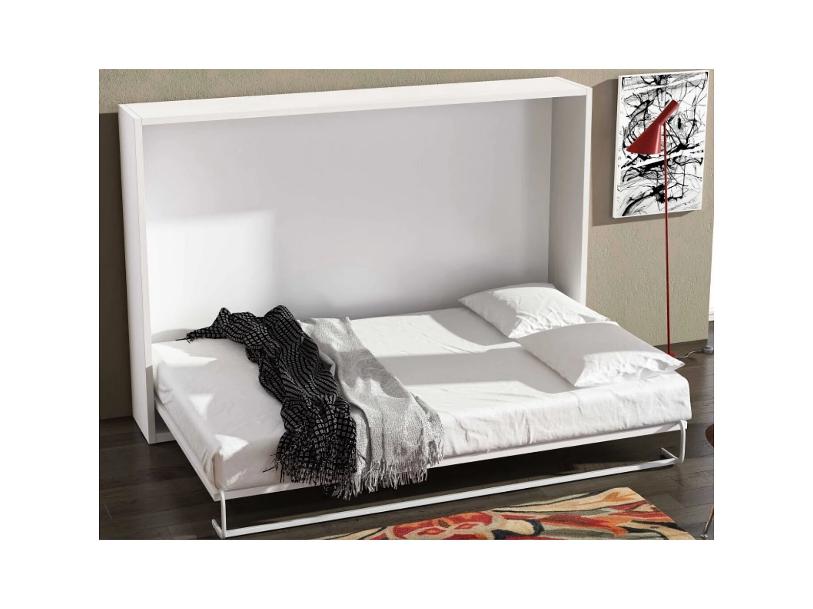 Lit escamotable horizontal OPTIMA-140x180-Cadre Blanc-Façade Blanche