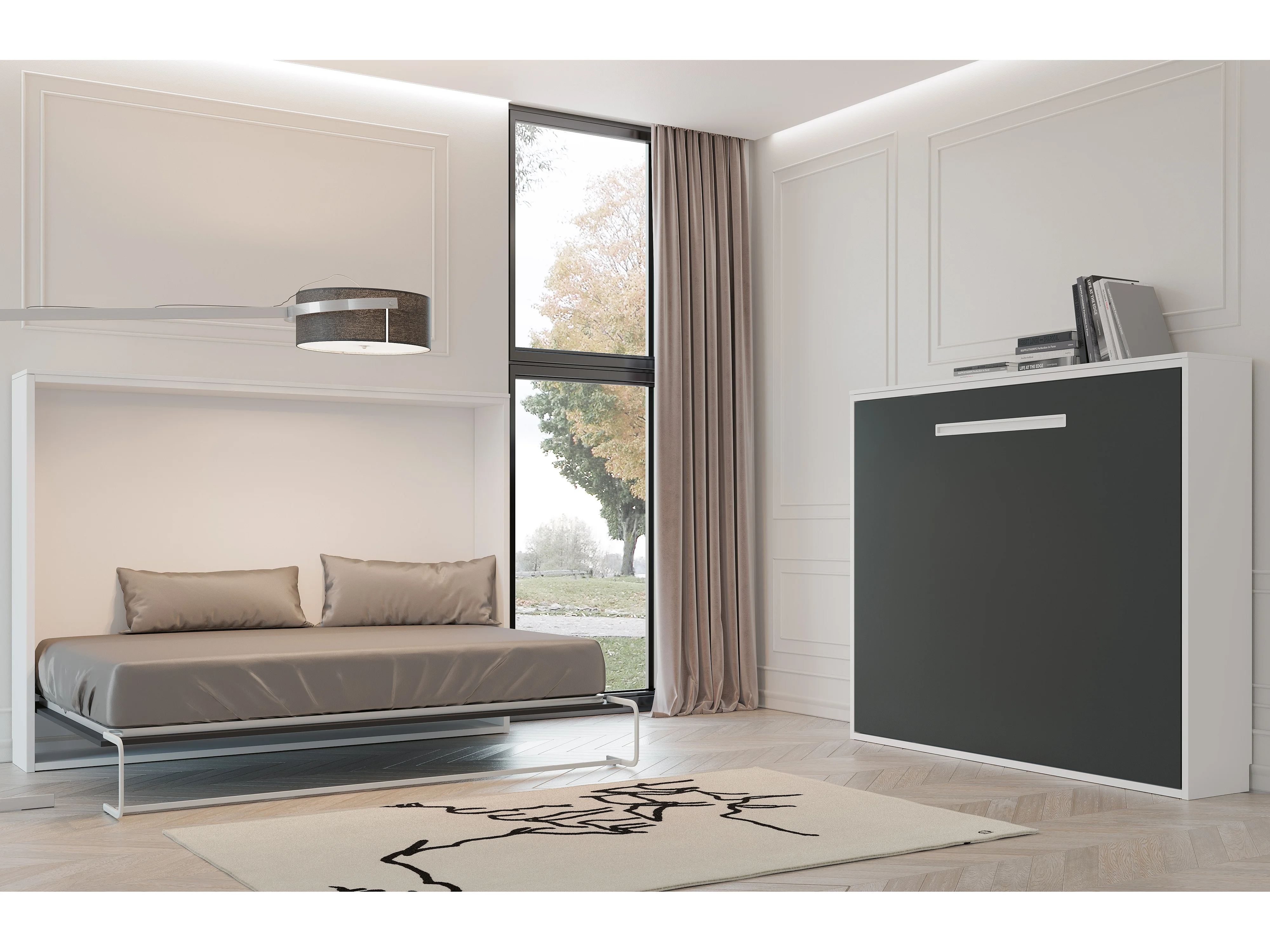 Lit escamotable horizontal OPTIMA-140x190-Cadre Anthracite-Façade Blanche