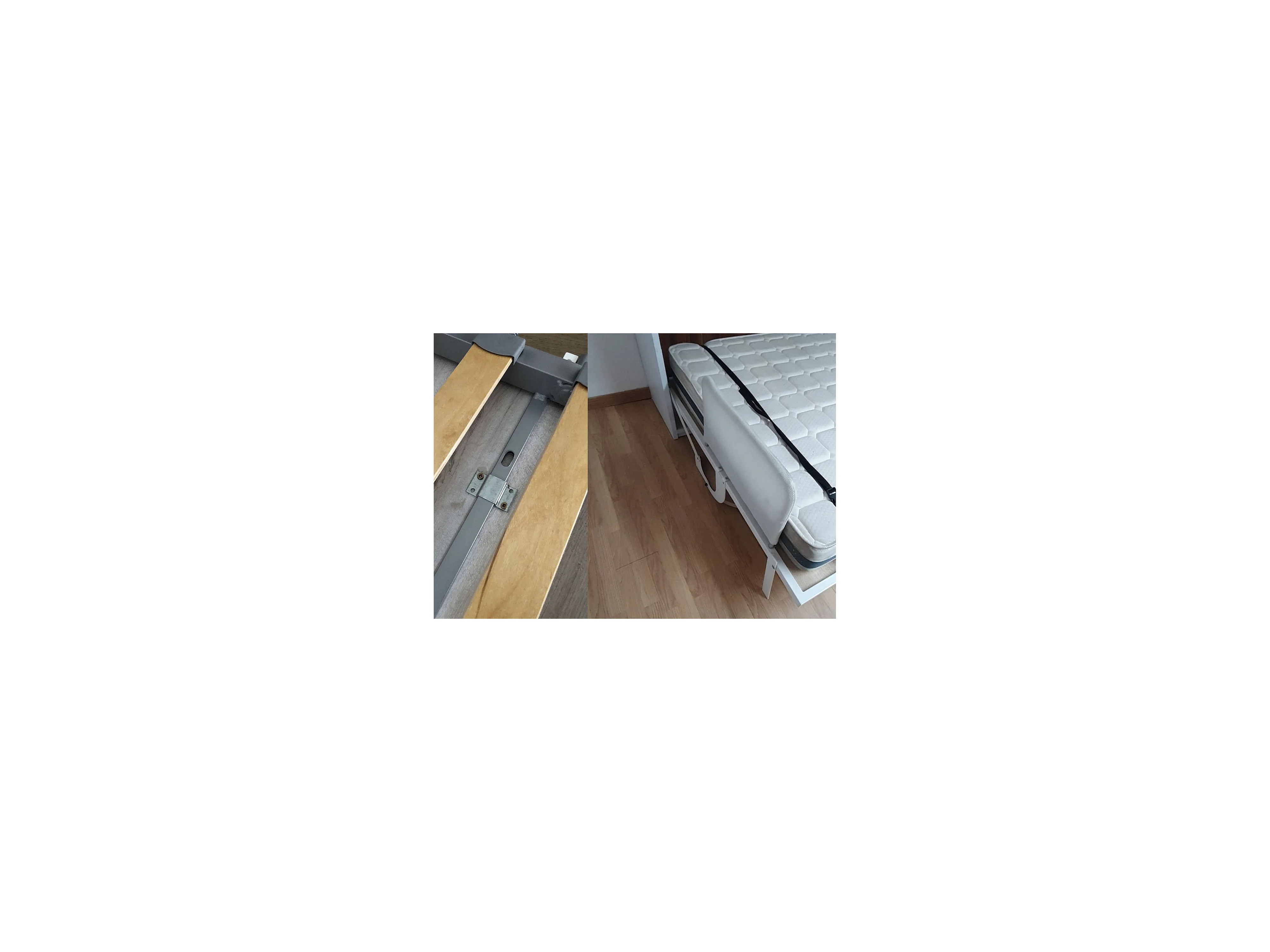 Lit escamotable horizontal OPTIMA-140x200-Cadre Blanc-Façade Chêne clair