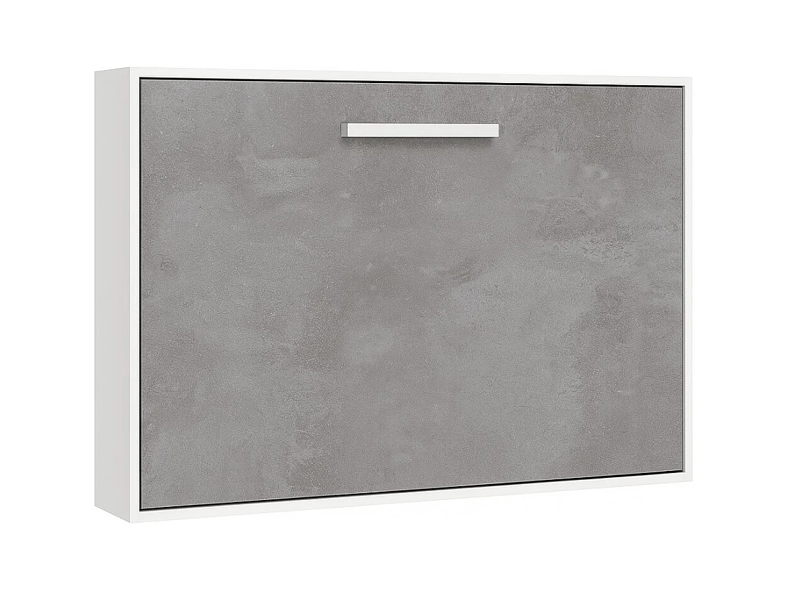 Lit escamotable horizontal OPTIMA-140x200-Cadre Blanc-Façade Gris ciment