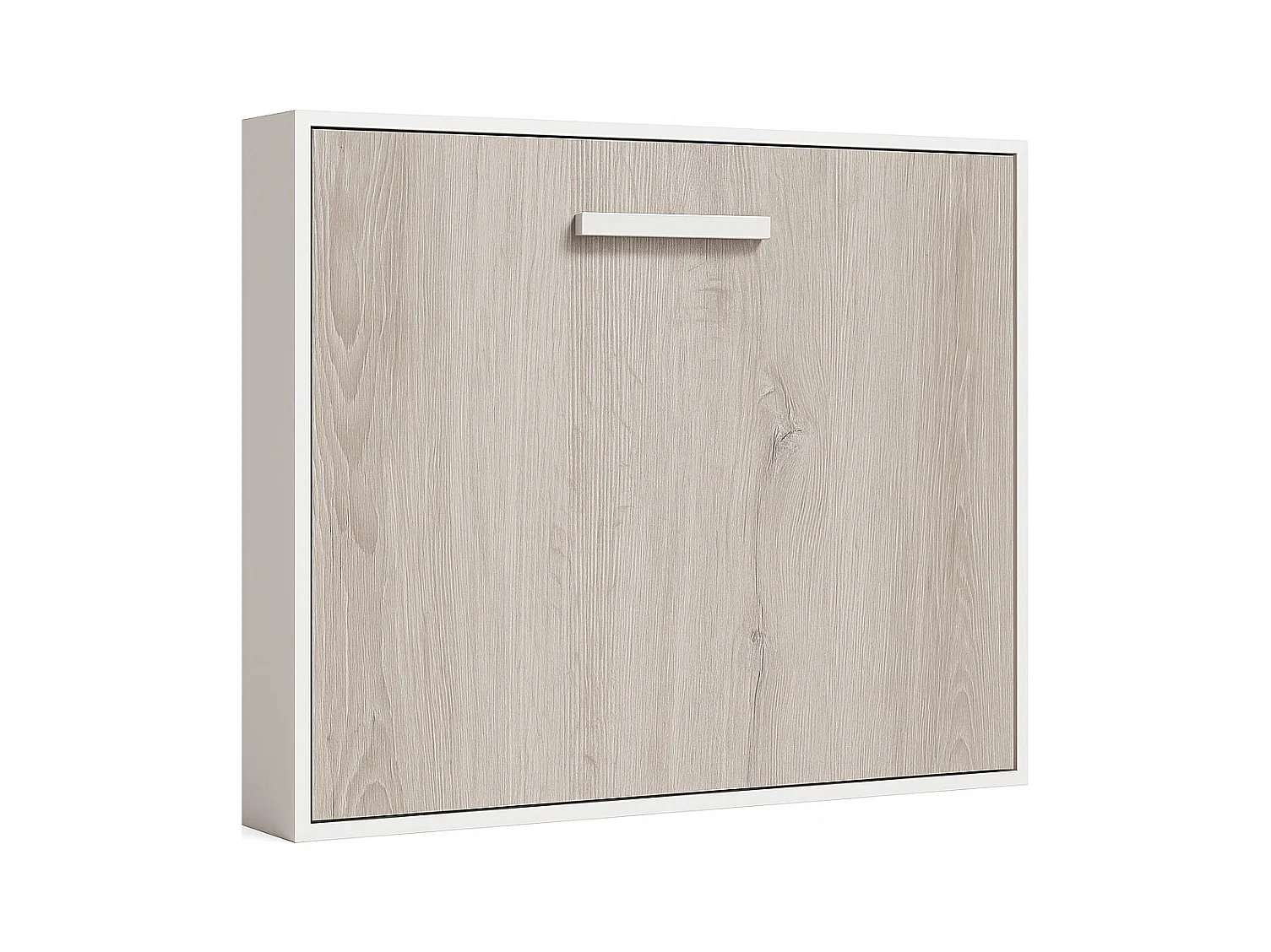 Lit escamotable horizontal OPTIMA-90x190-Cadre Blanc-Façade Chêne gris