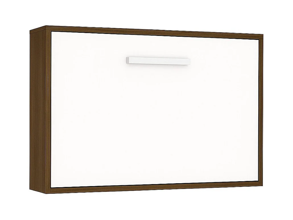 Lit escamotable horizontal OPTIMA-Avec matelas-90x200-Cadre Frêne-Façade Blanche