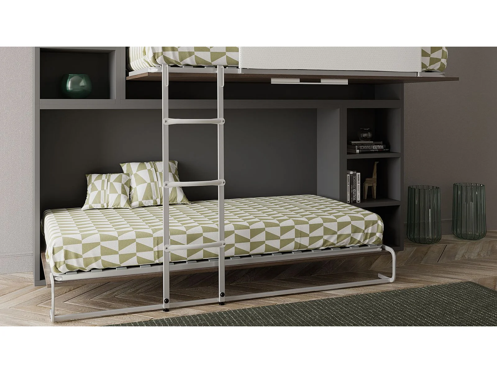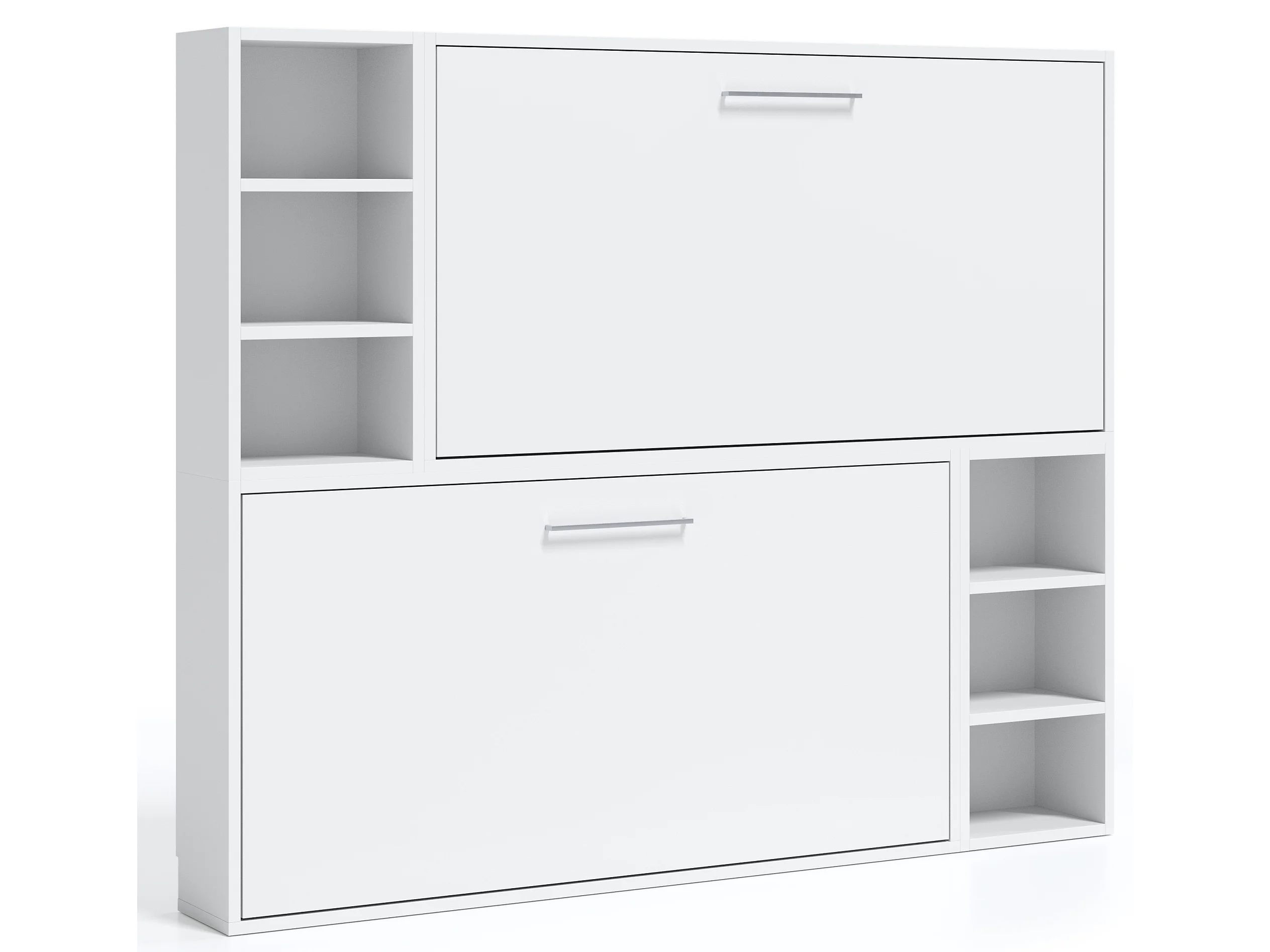 Lit escamotable superposé avec niches de rangement Briano-2 matelas-90x190-Cadre Blanc-Façade Blanche