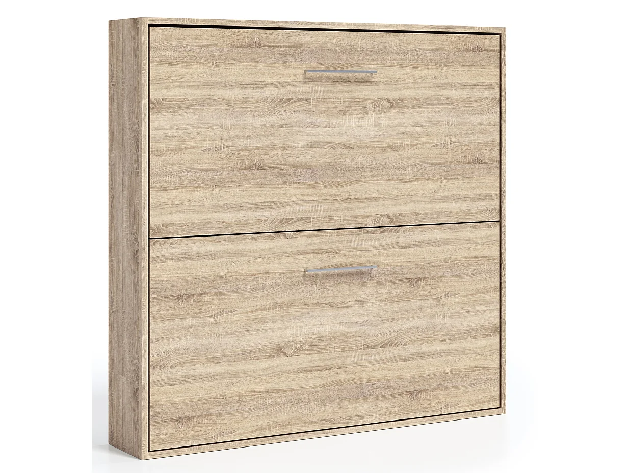 Lit escamotable superposé SOPHIA-2 matelas-80x190-Cadre Noyer-Façade Noyer