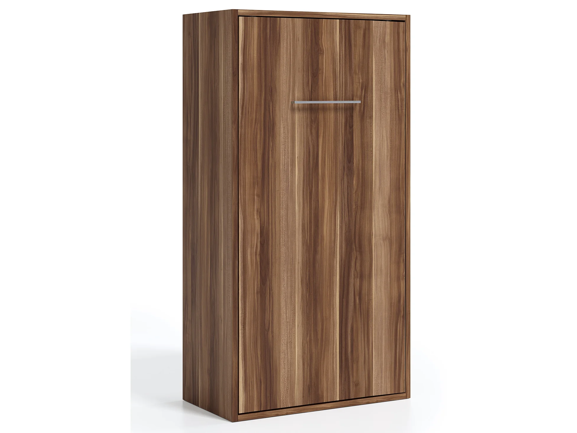 Lit escamotable superposé vertical 2 couchages 90x190 Liker-2 matelas-Cadre Gris ciment-Façade Gris ciment
