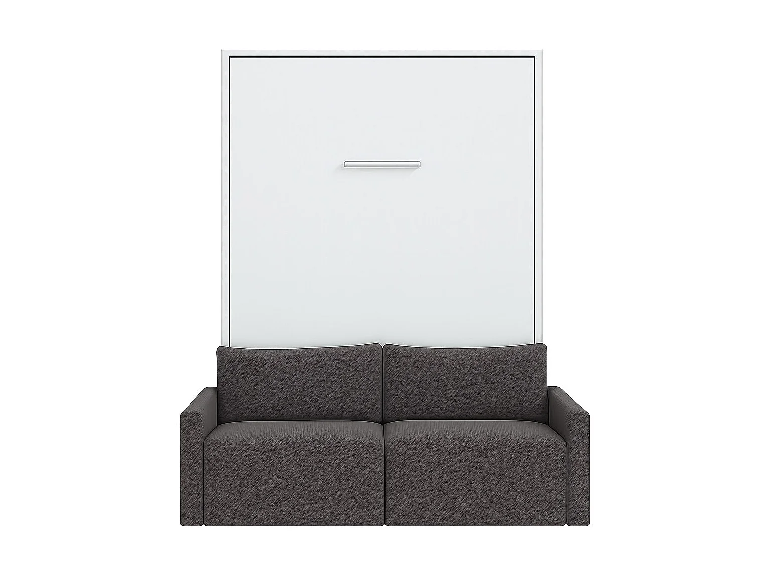 Lit escamotable vertical avec canapé tissu VALENCIA-80x180-Canapé Gris clair-Structure Blanche