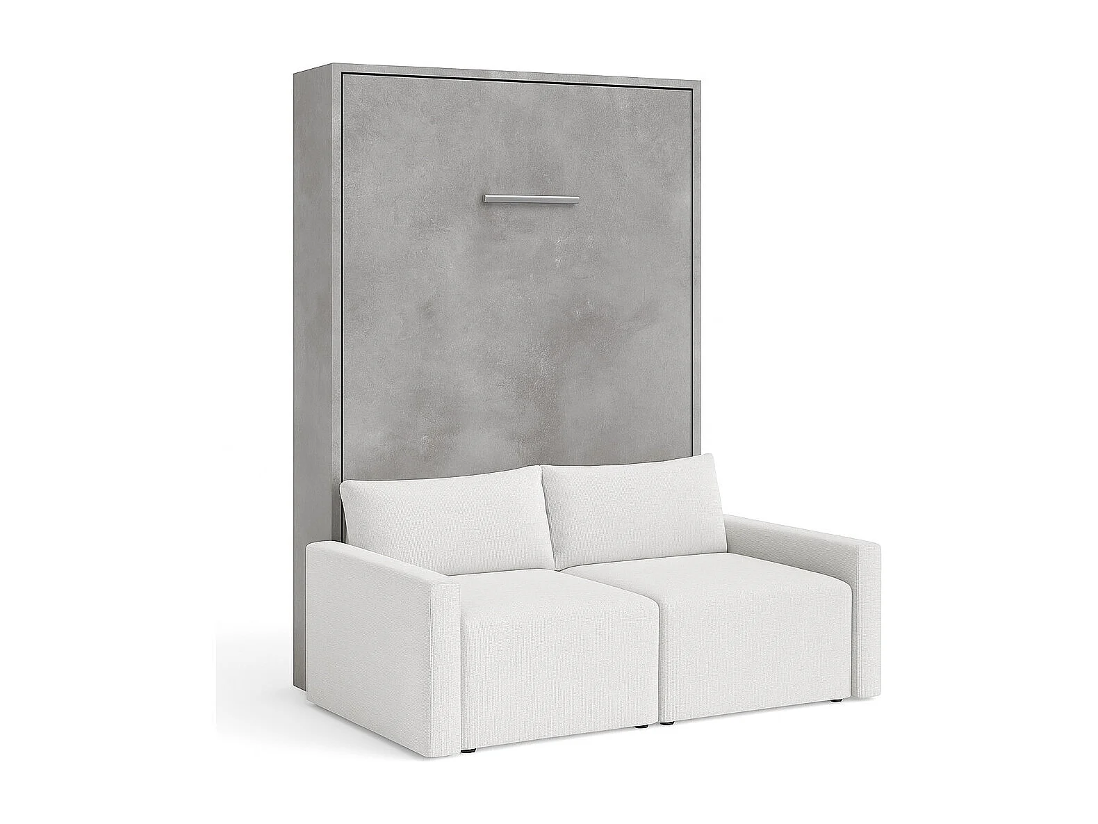 Lit escamotable vertical avec canapé tissu VALENCIA-80x180-Canapé Gris clair-Structure Gris ciment