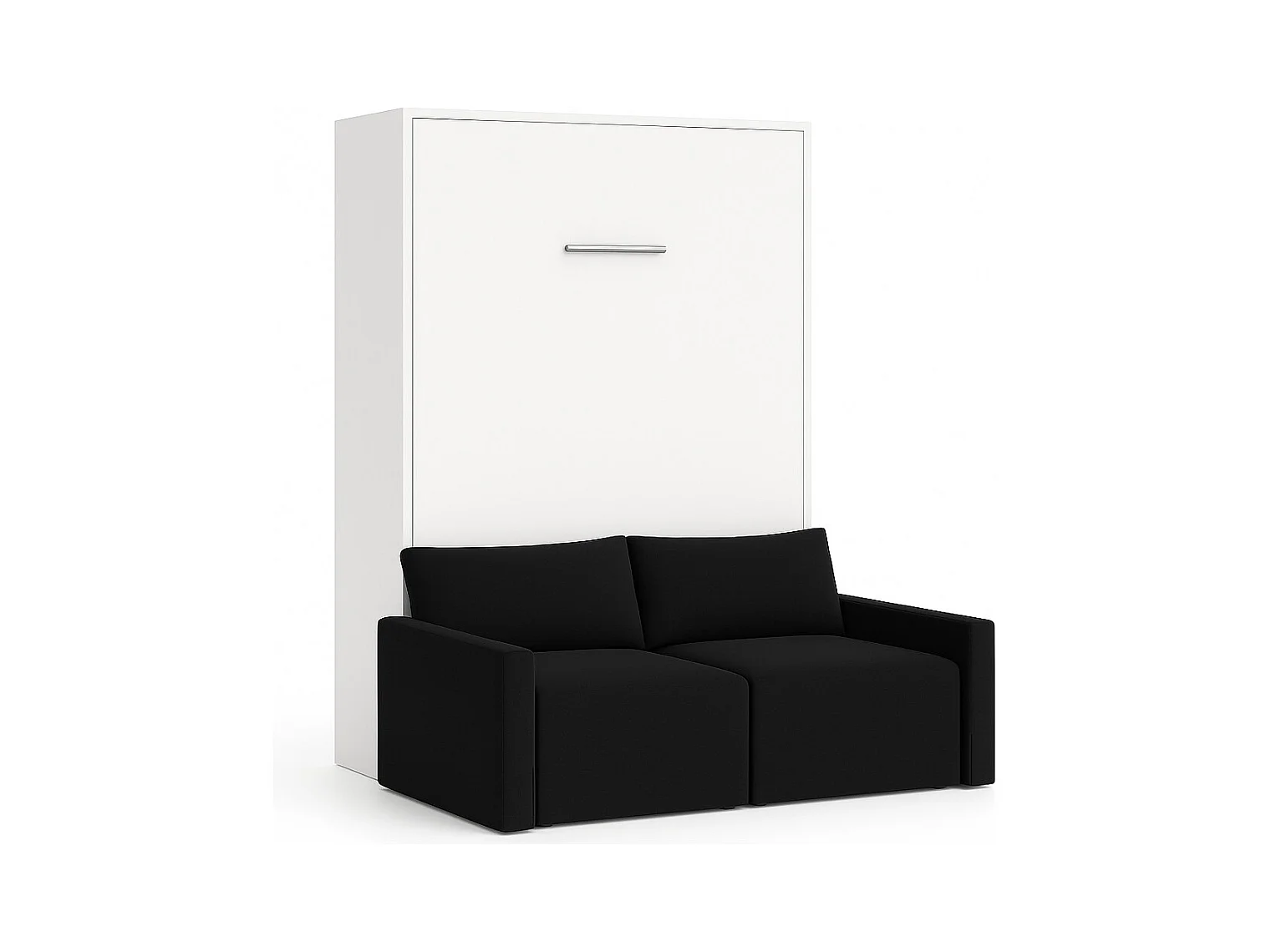 Lit escamotable vertical avec canapé tissu VALENCIA-90x190-Canapé Noir-Structure Blanche