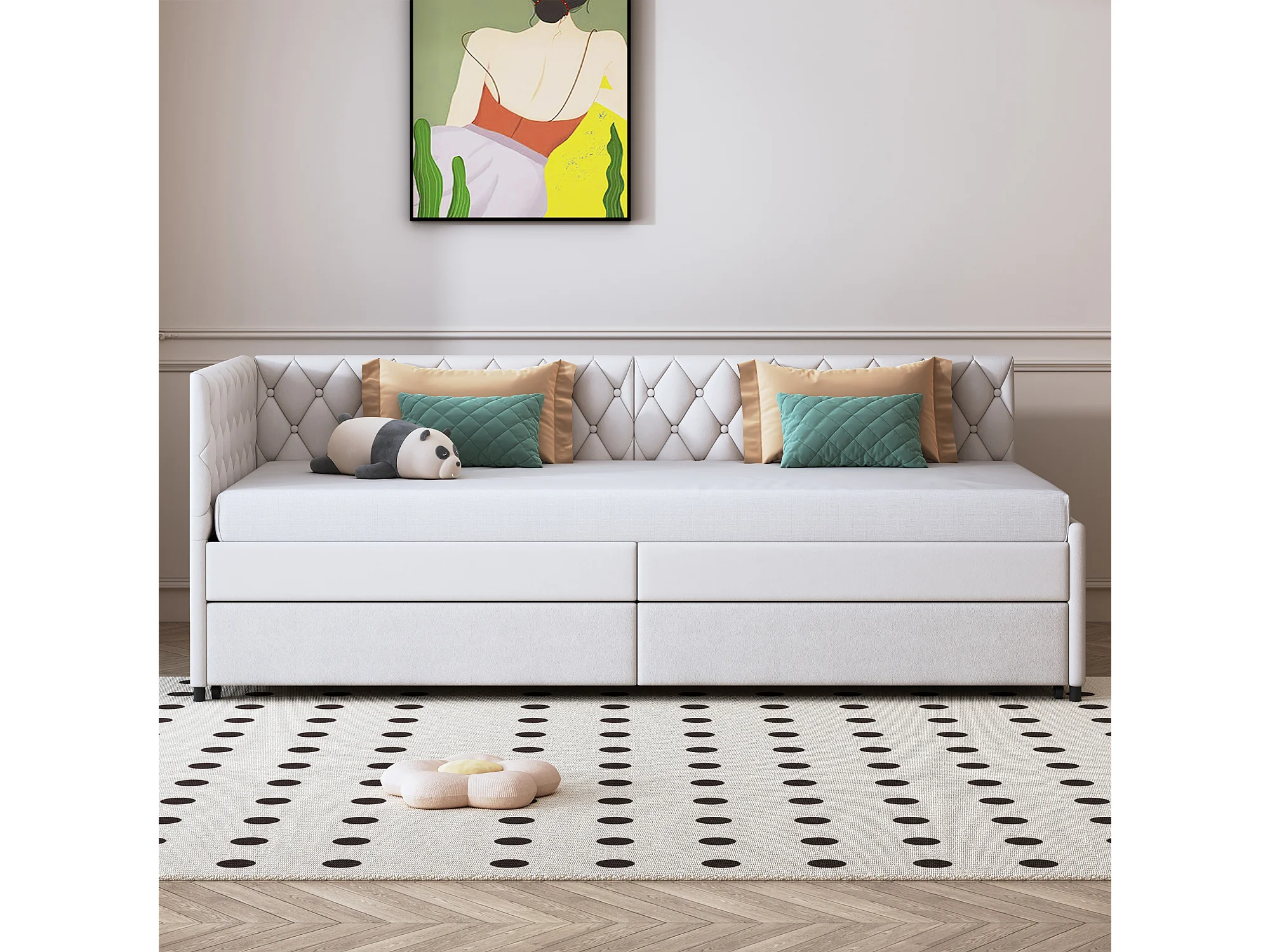 Lit gigogne 90/180x200 cm - Canapé-lit extensible à sommier à lattes - Velours - Beige