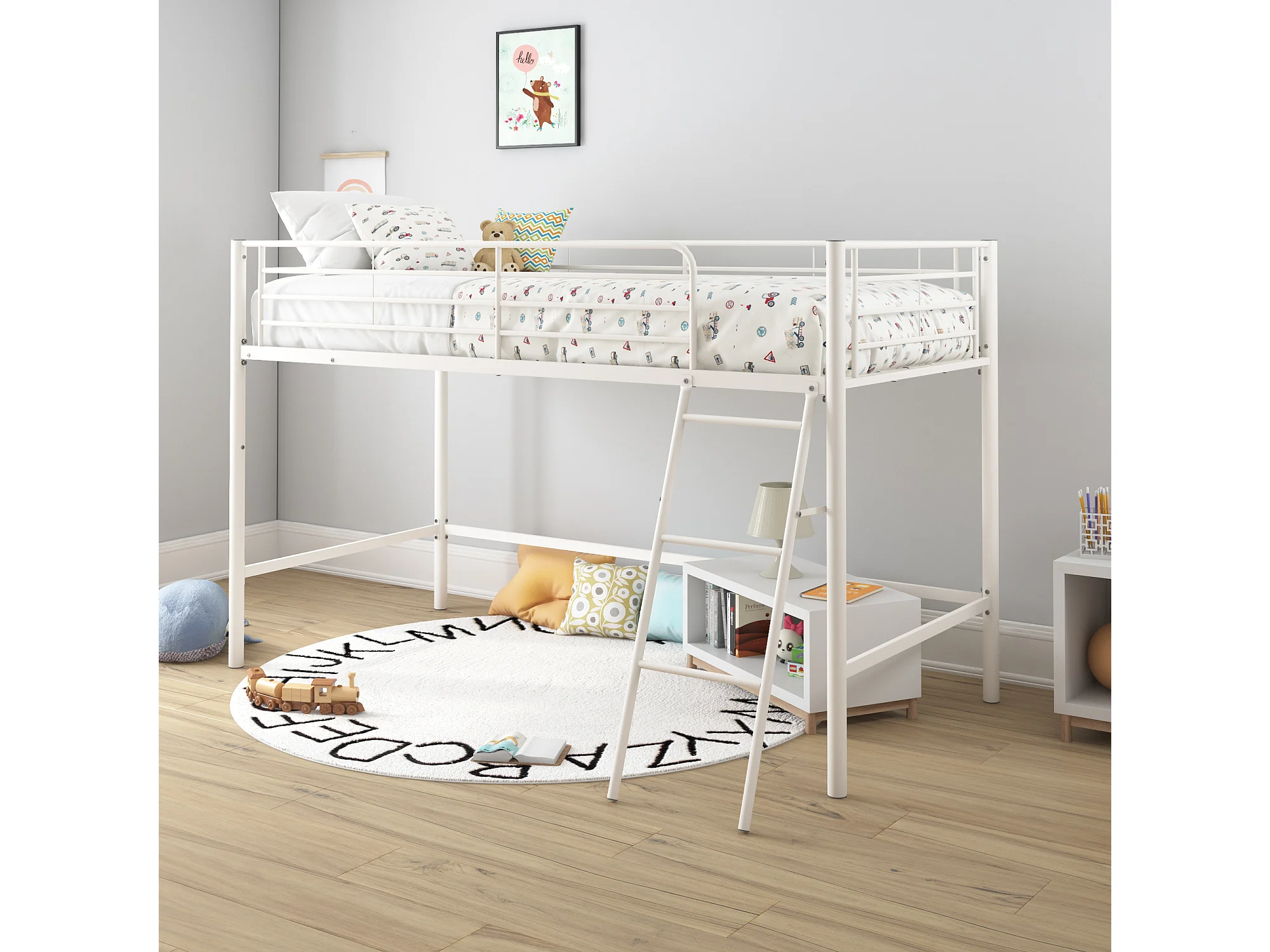 Jodie | Lit surélevé en métal blanc 90x200