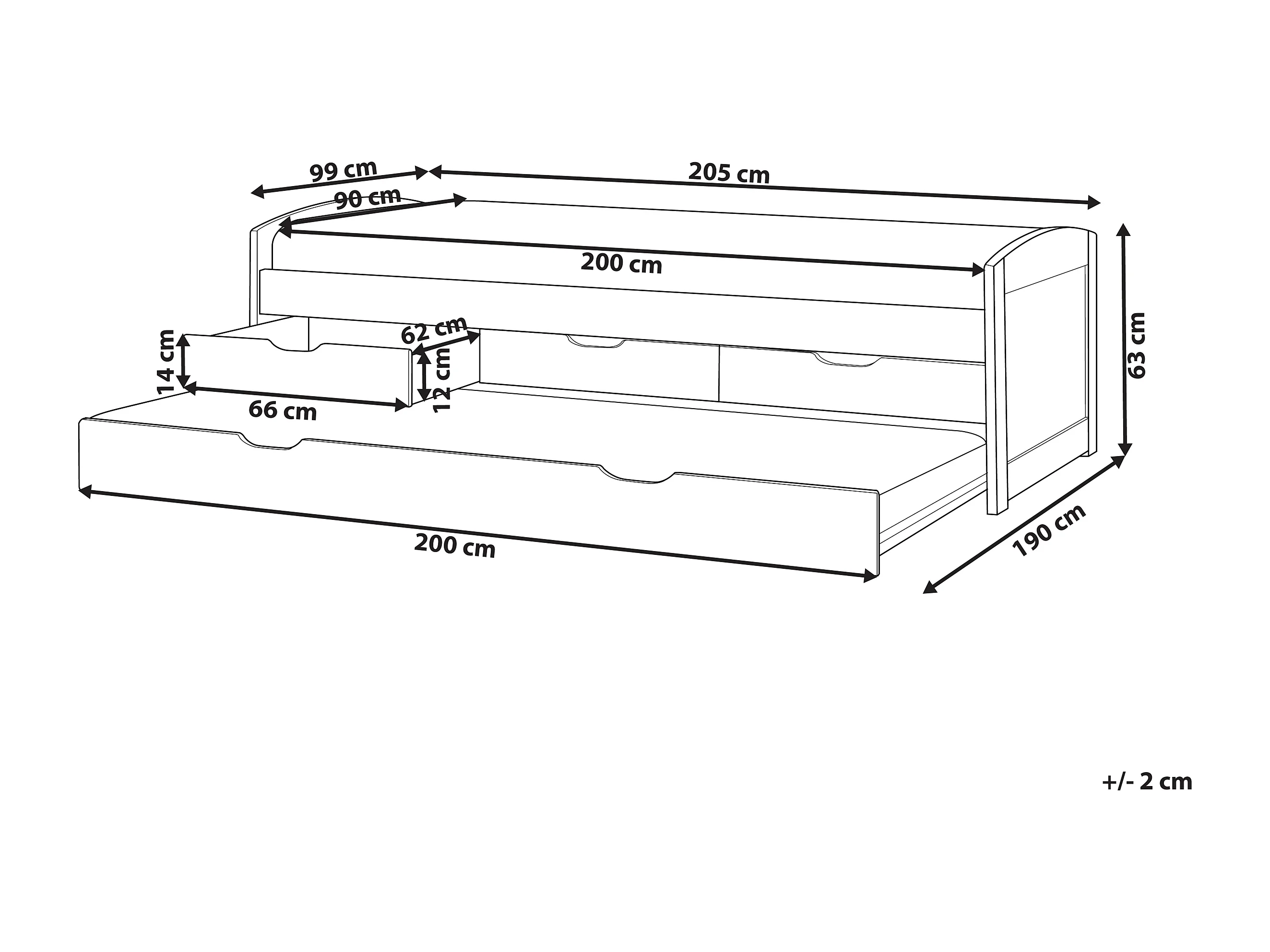 Lit gigogne Bois de pin PETIVILLE 90 x 200 cm Blanc