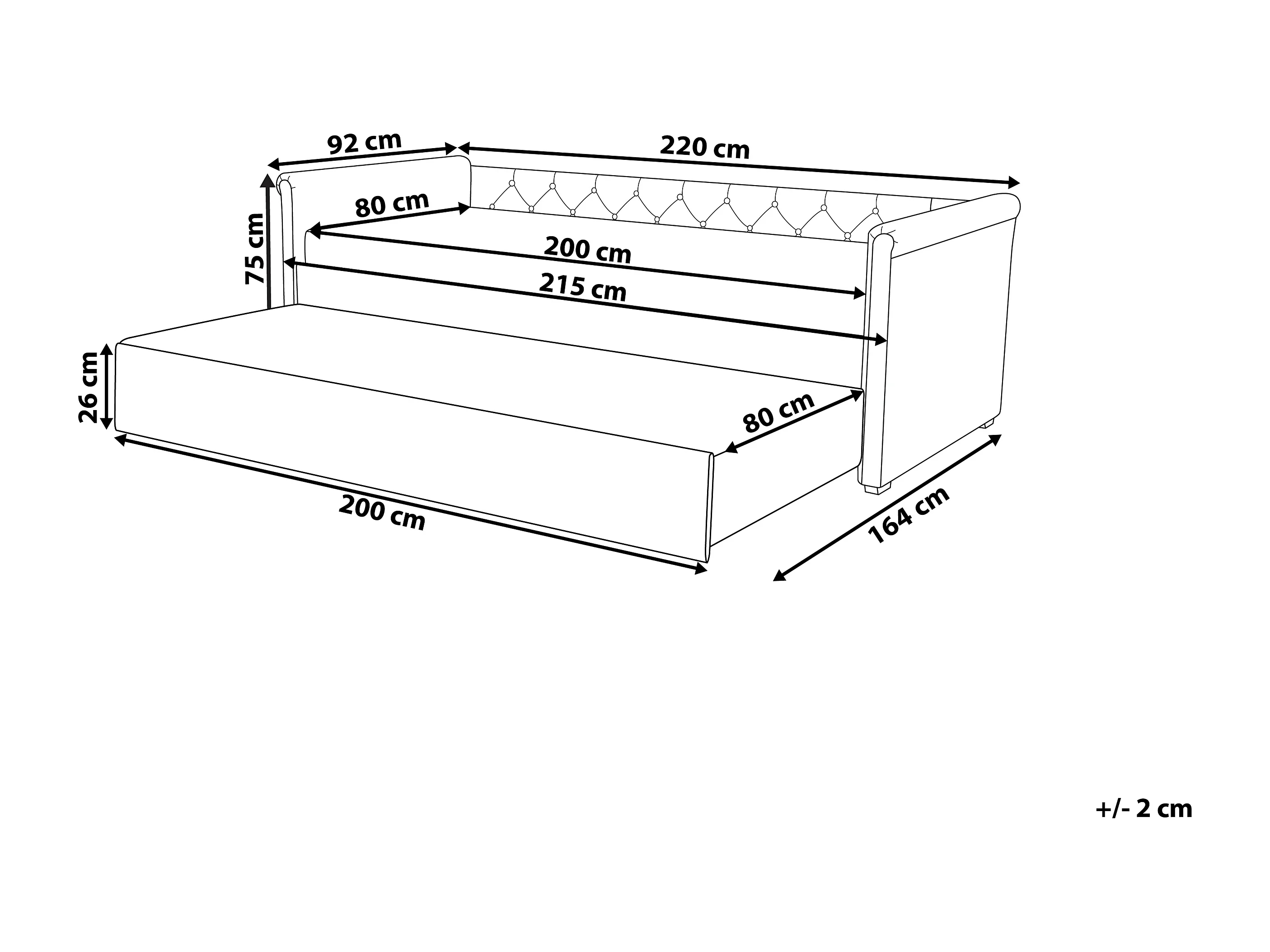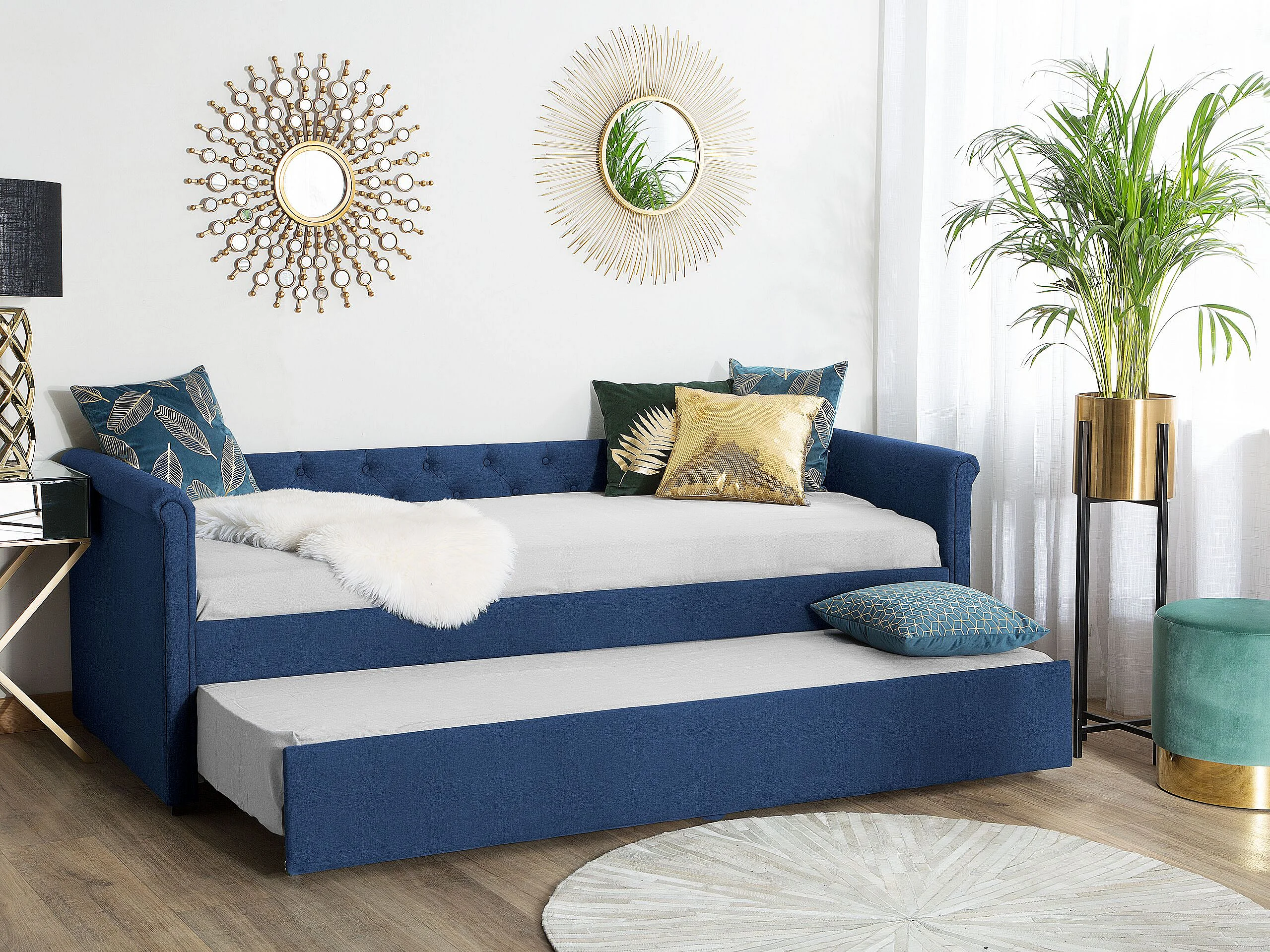 Lit gigogne Tissu LIBOURNE 80 x 200 cm Bleu marine