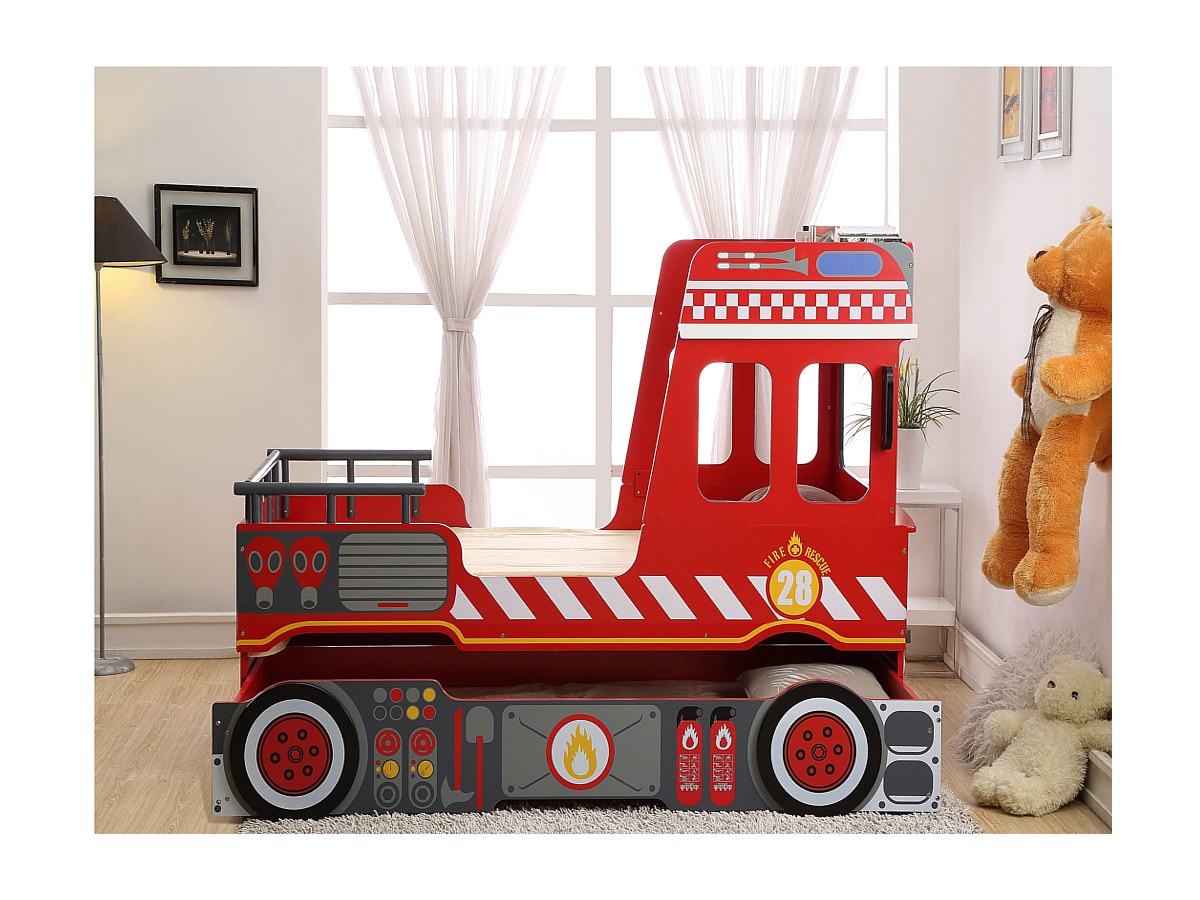 Lit pompier gigogne SAPEUR 2x90x190cm - MDF rouge