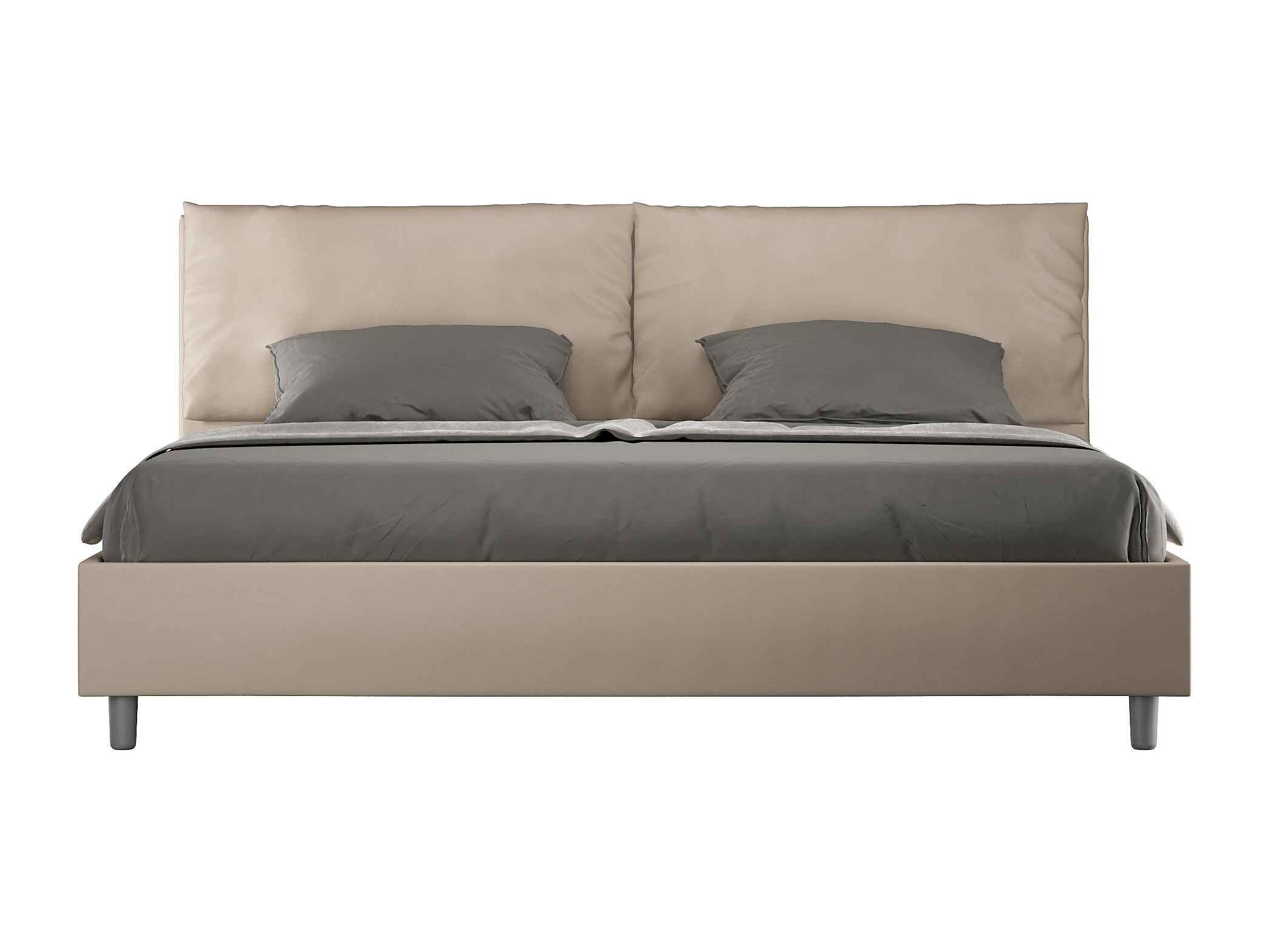 Lit king size coffre rembourré 200x200 similicuir taupe Antea Large