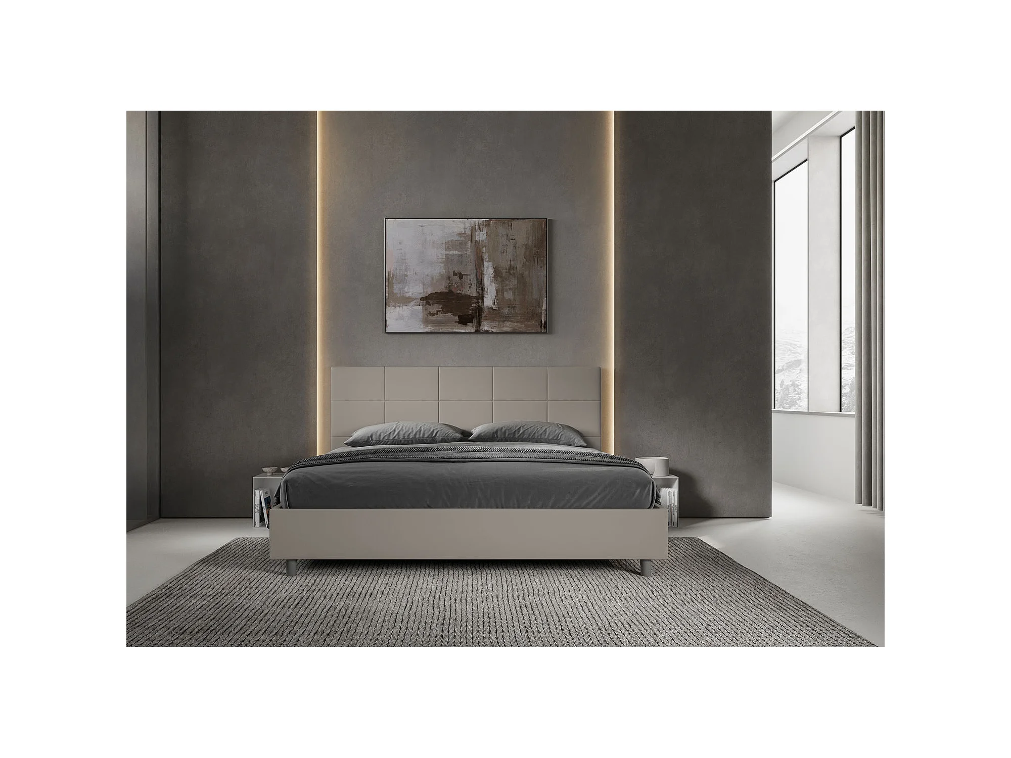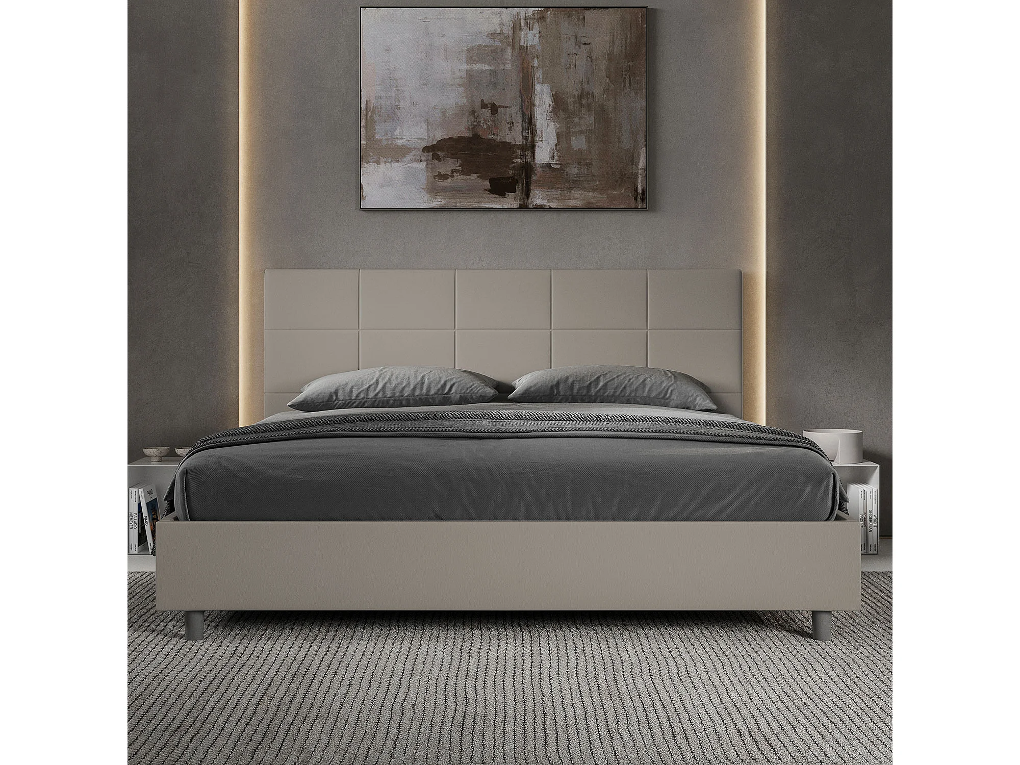 Lit king size avec sommier rembourré 200x210 similicuir taupe Goya