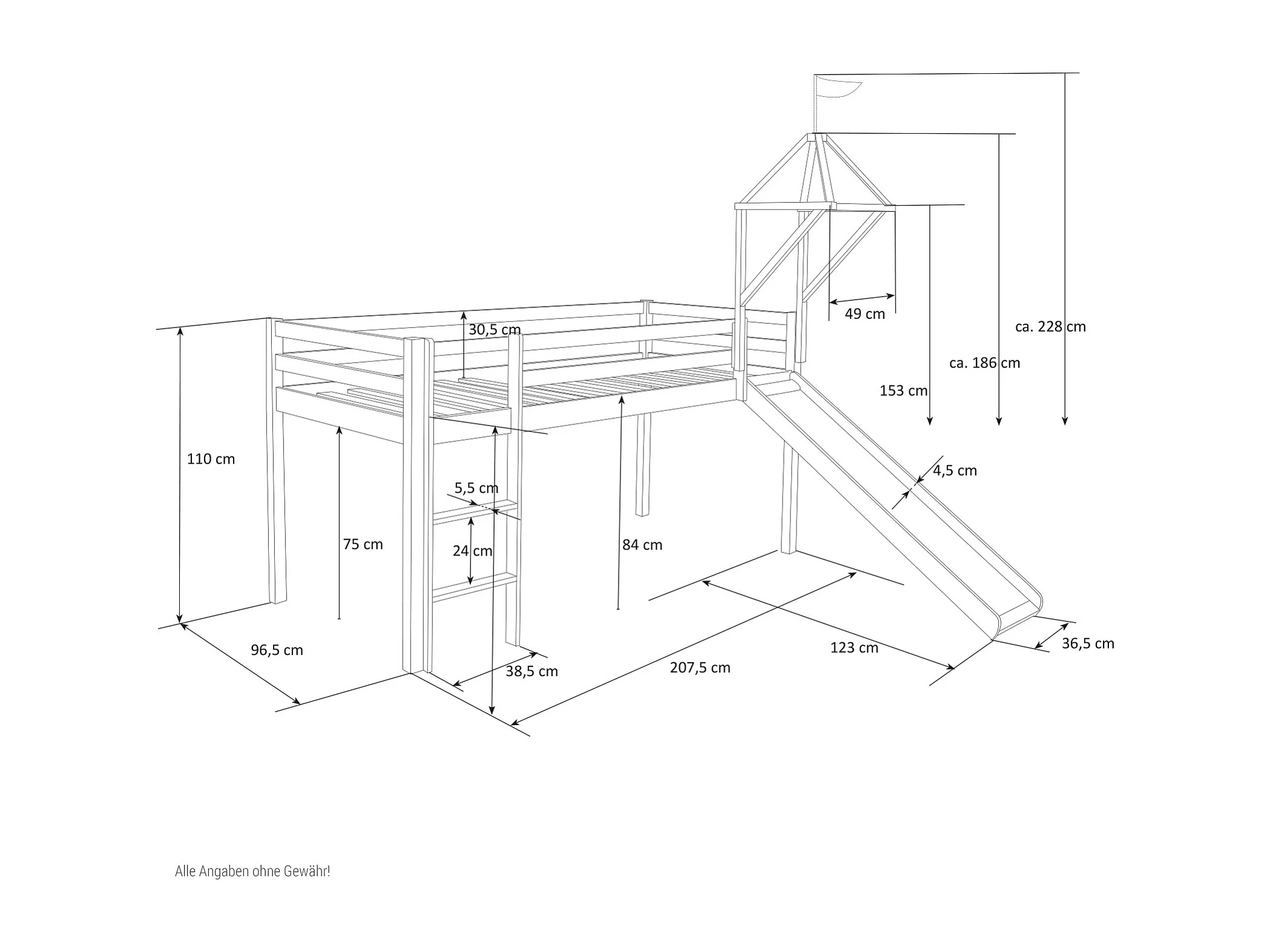 Lit mezzanine 207,5x228x219,5 cm Blanc Gris Lattes Tour