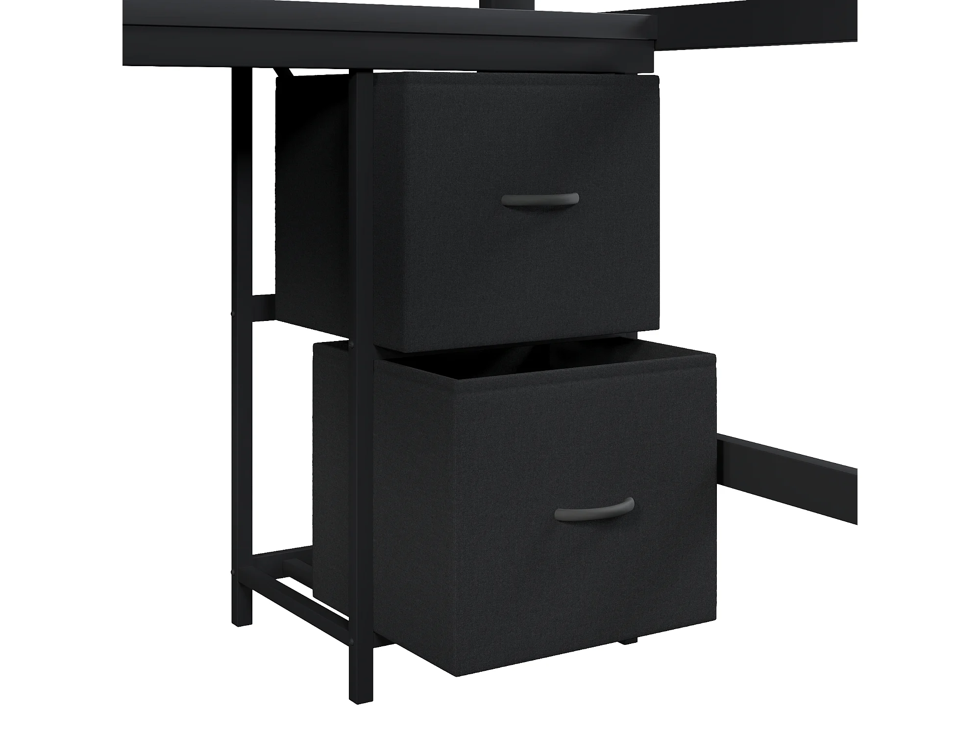 Lit Mezzanine 140x200 cm, Cadre en Métal avec Tiroirs Pratiques et Bureau en L Stylé - Design Stratifié, Noir