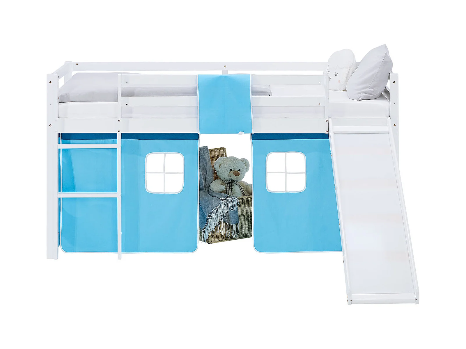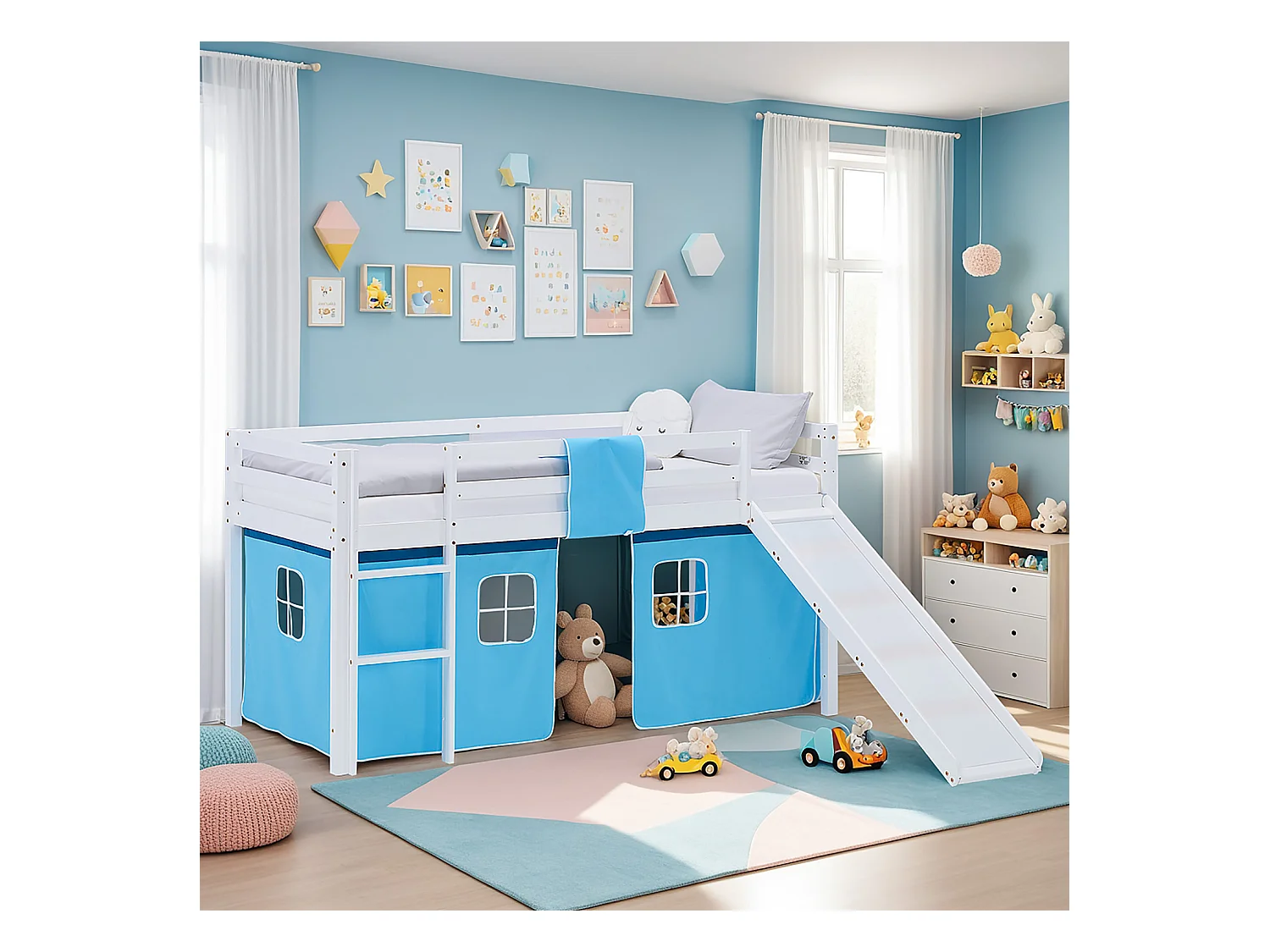 Lit Mezzanine pour Enfants 90x200 cm Blanc Bleu