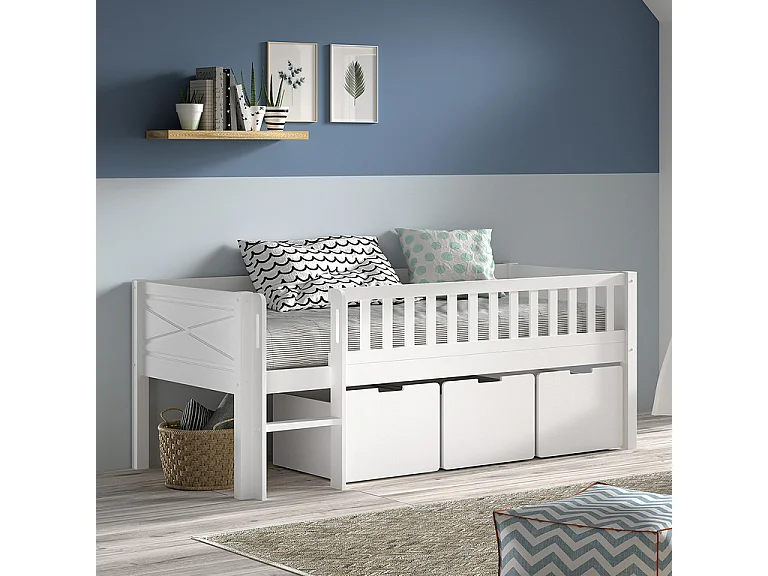 Lit mi-hauteur 90x200 sommier et tiroirs inclus Sam Blanc