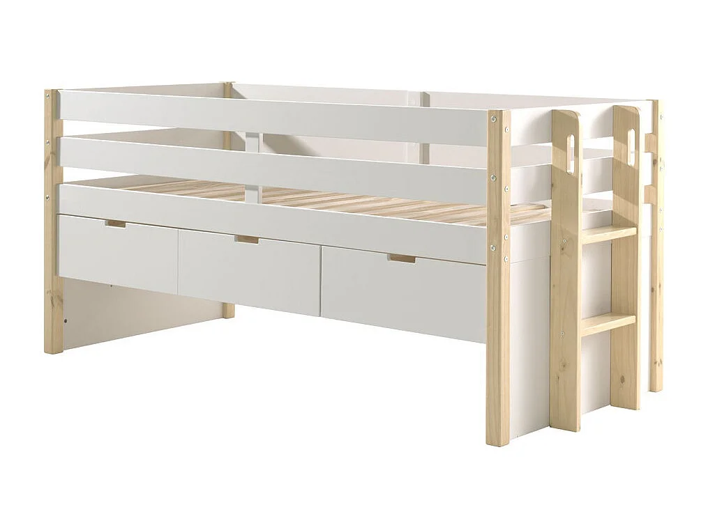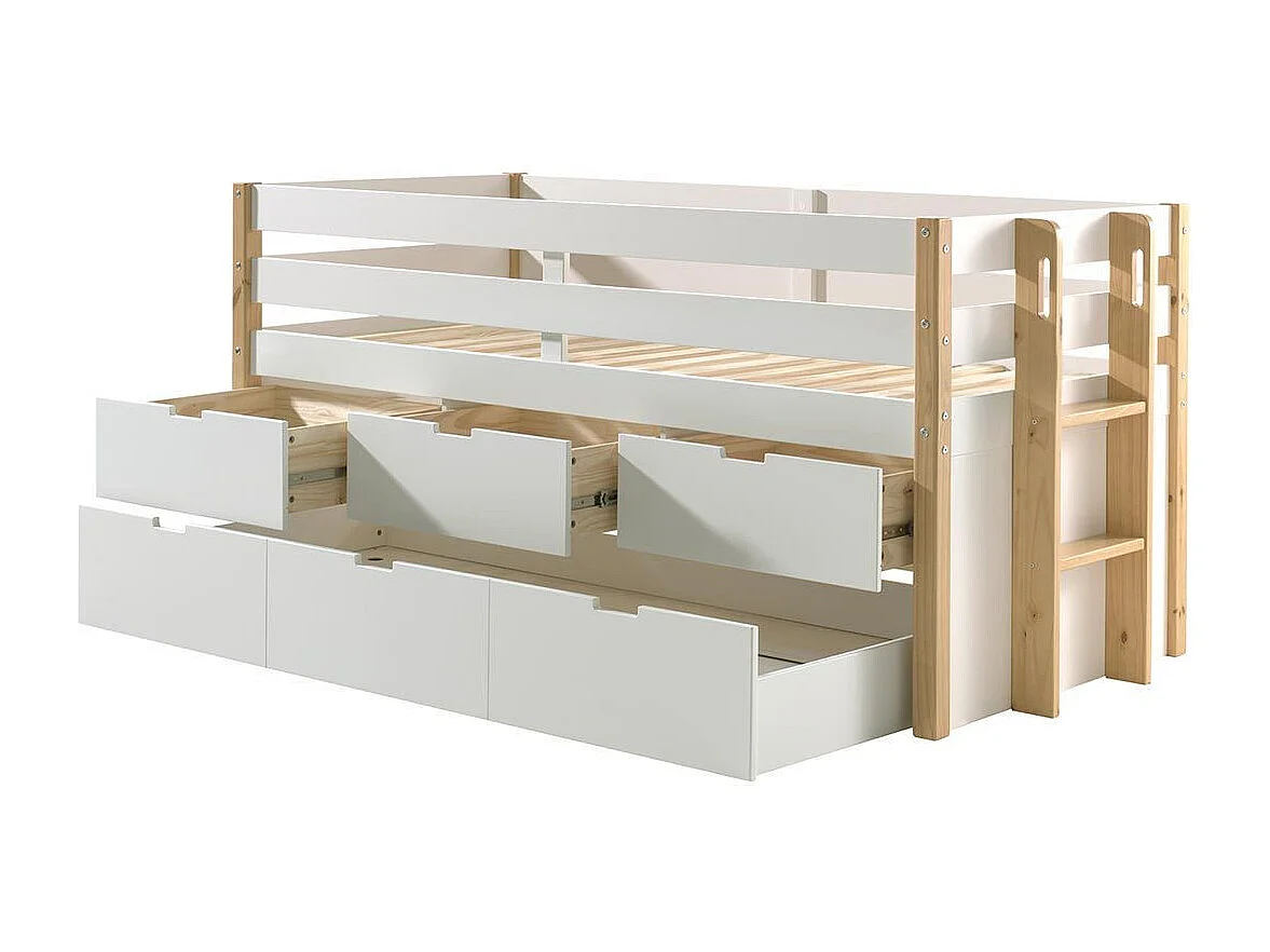Pack - Lit Capitaine Surélevé & 4 Tiroirs "Margrit" 90x200cm Blanc