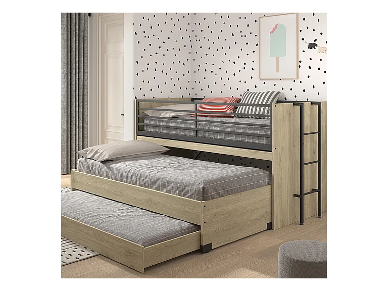 Lit mi-hauteur 90x200 sommier et tiroirs inclus Sam Bois