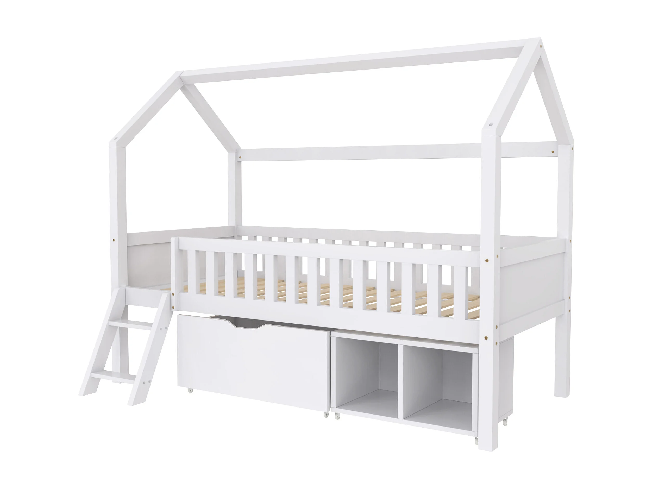 Lit mi-hauteur 90x200 cm avec tiroirs – Bois blanc (sans matelas)