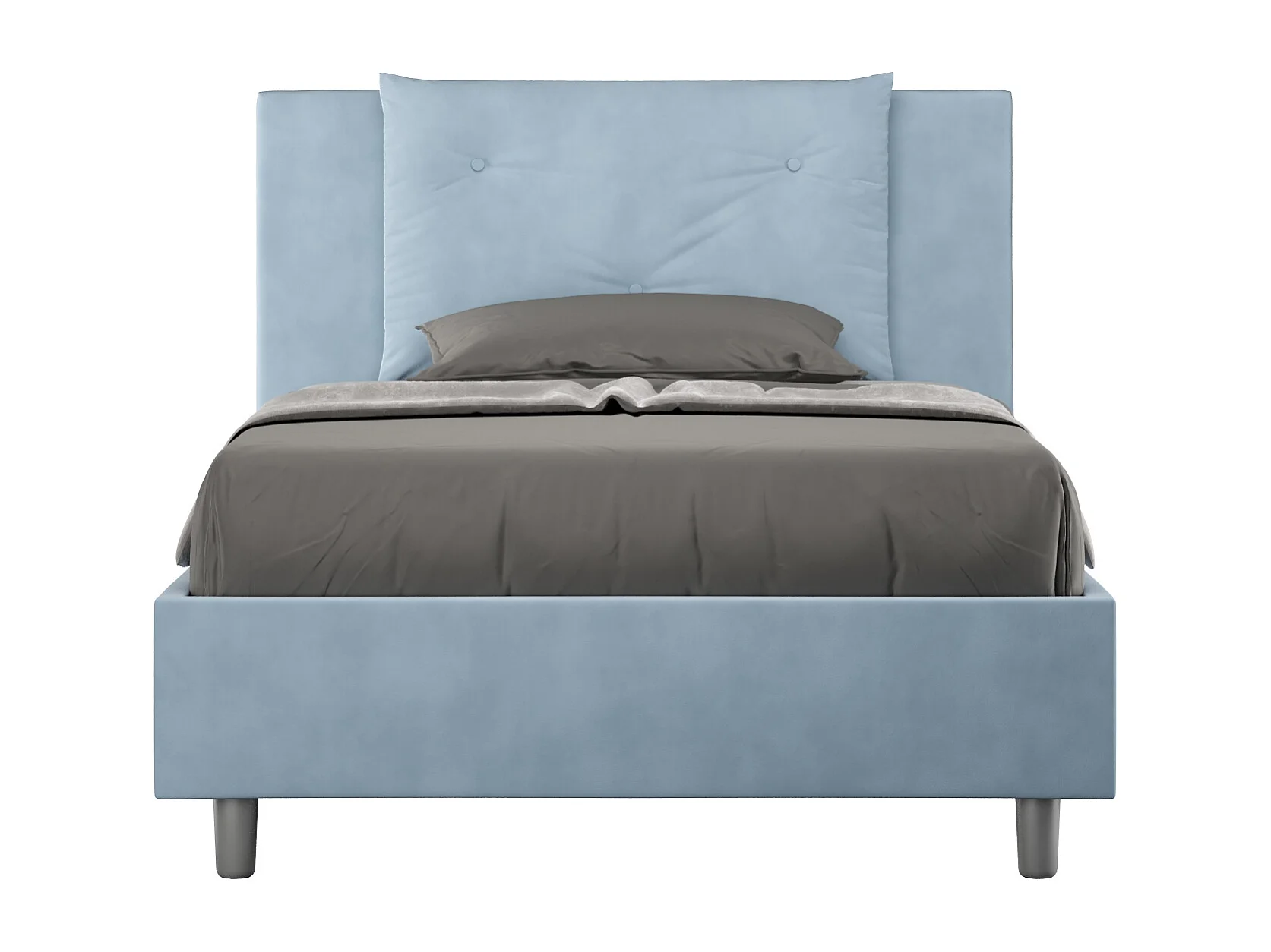 Lit 1 place et demi avec sommier rembourré 120x200 microfibre bleu clair Appia