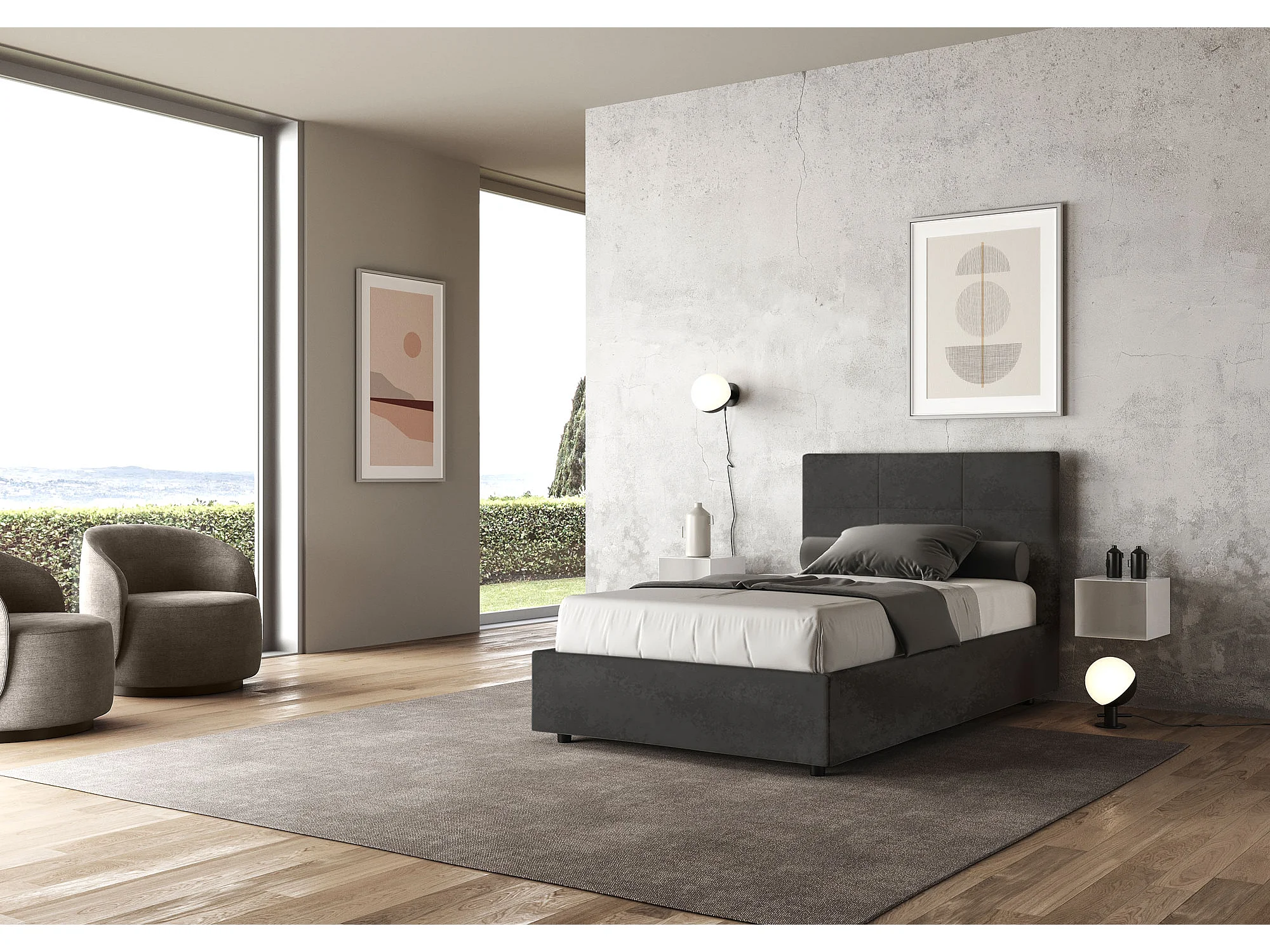 Lit 1 place et demi avec sommier rembourré 120x210 microfibre gris Mika