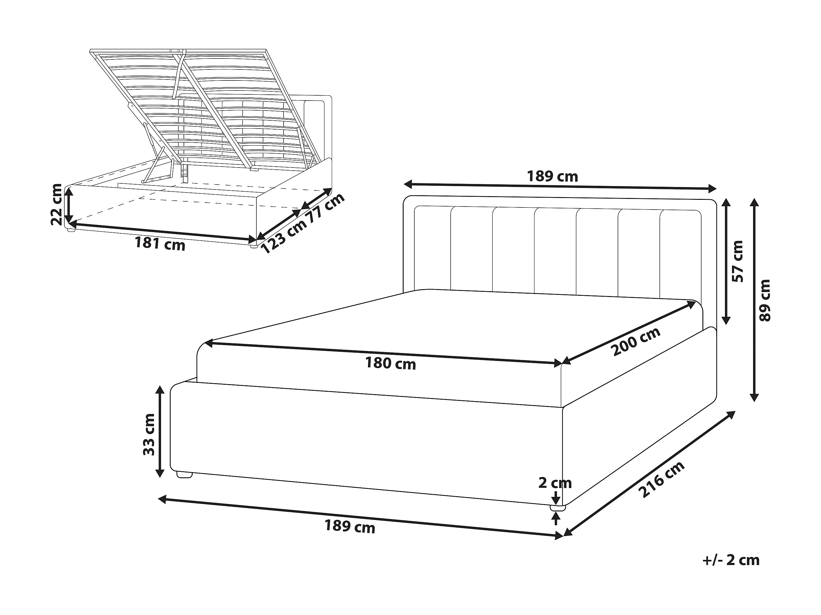 Lit ottoman Bouclé MONTLAUR 180 x 200 cm Taupe