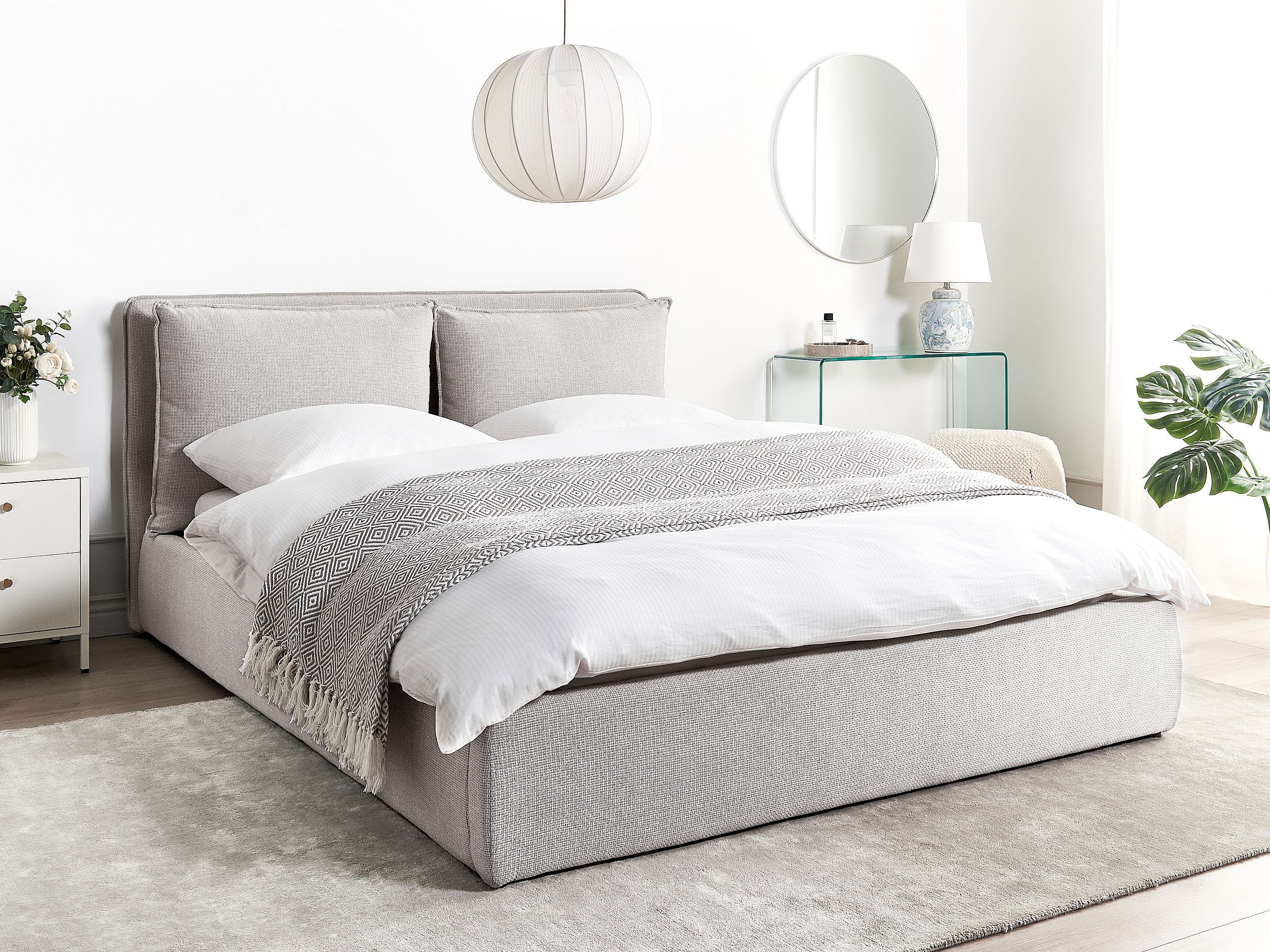 Lit ottoman Tissu BAJONNA 160 x 200 cm Gris clair