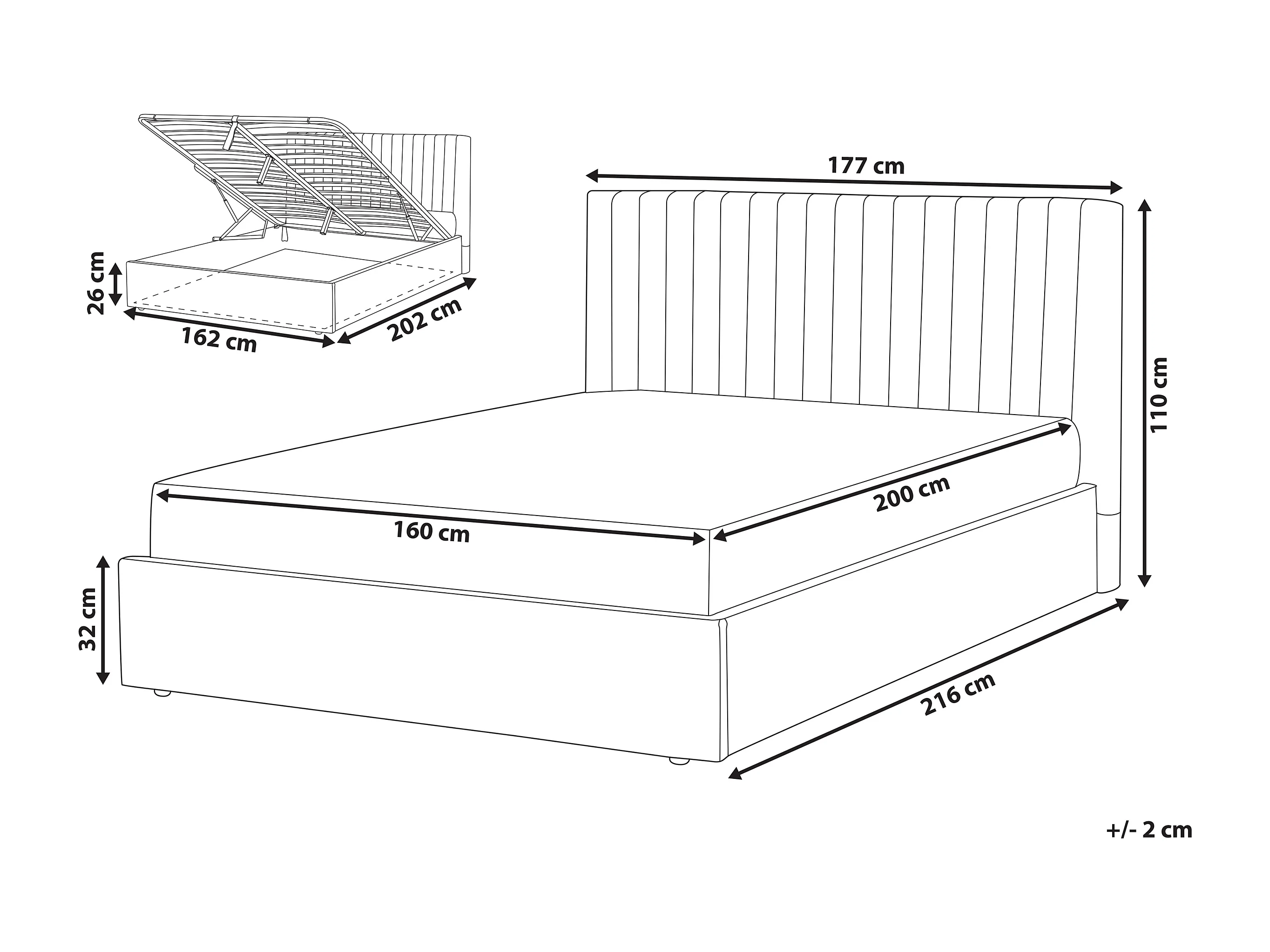 Lit ottoman Tissu VION 160 x 200 cm Beige