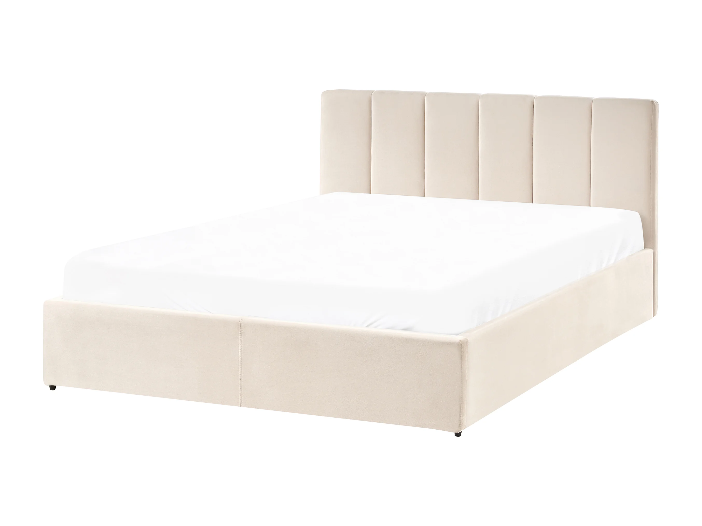 Lit ottoman Velours DREUX 140 x 200 cm Beige clair