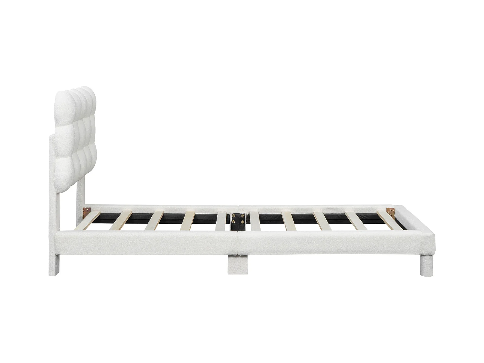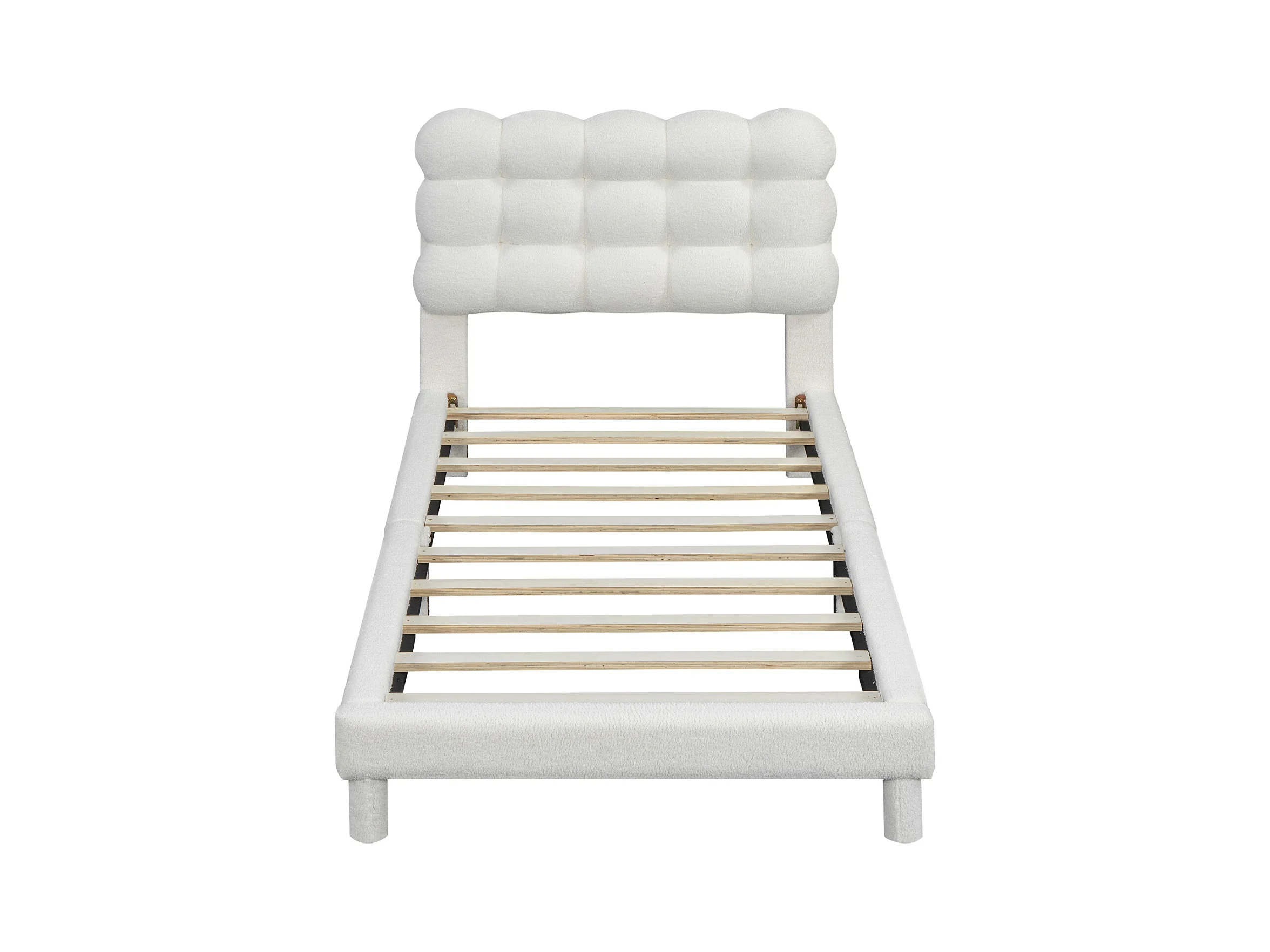 Lit enfant 90x200 cm en velours blanc doux – Forme d’ours, lit simple capitonné