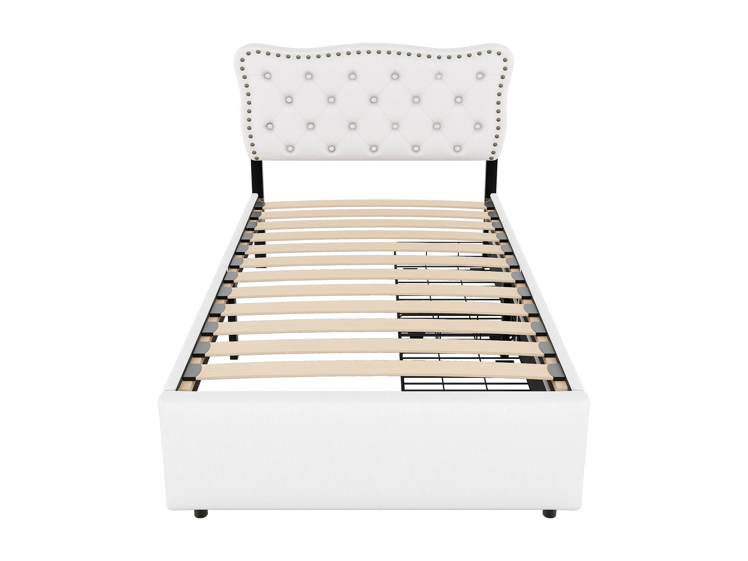 Canapé-lit rembourré 90x200 cm beige multifonction avec 2 grands tiroirs de rangement et sommier à lattes