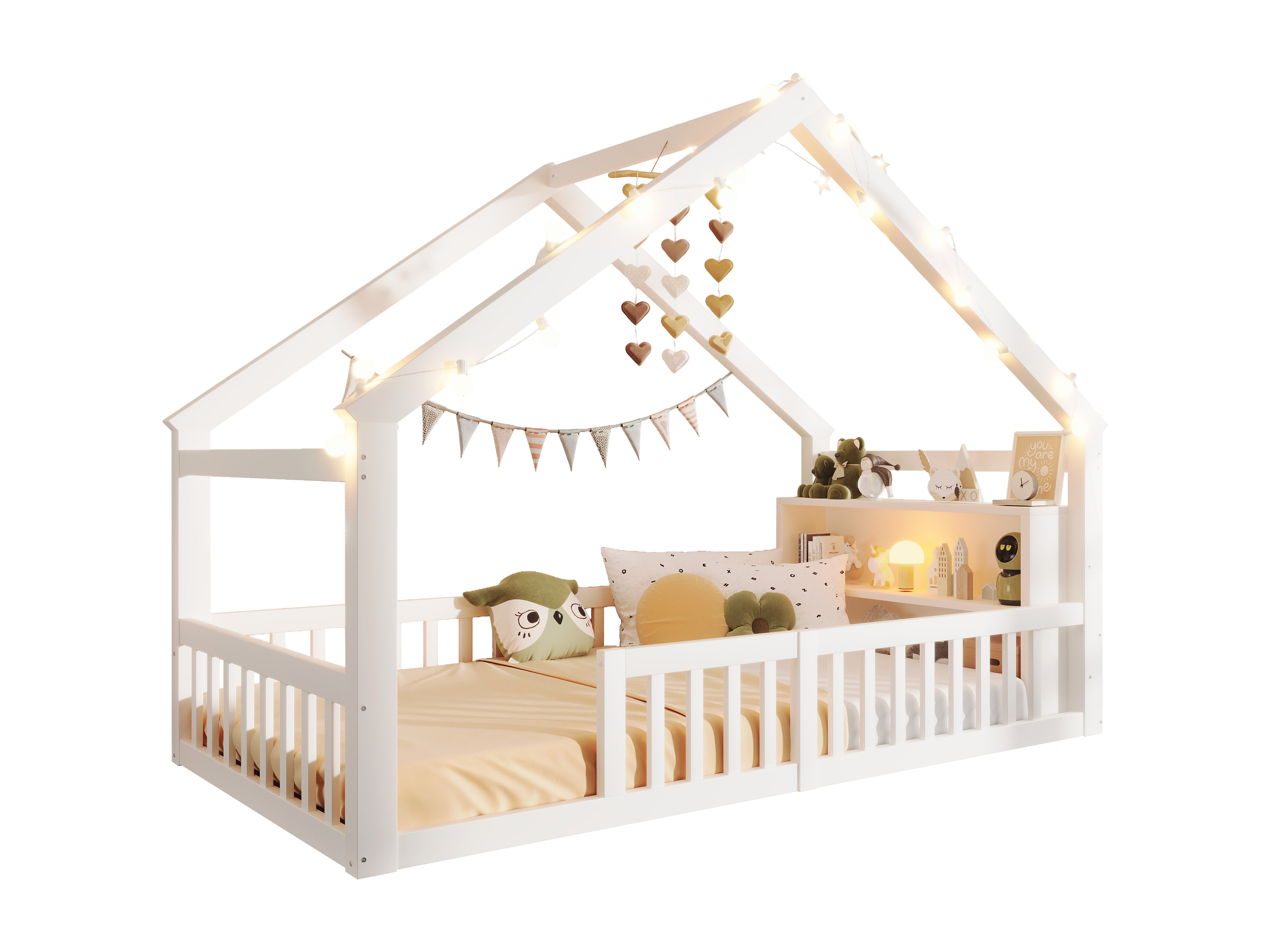 Lit plat pour enfant - 90 x 190 cm - avec barrière de sécurité - style minimaliste - bois - blanc