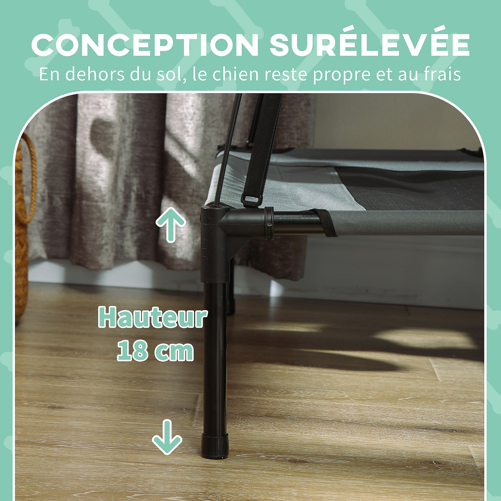 Lit pour chien chat sur pied velum anti-UV tissu Oxford micro-perforé sac transport inclus gris