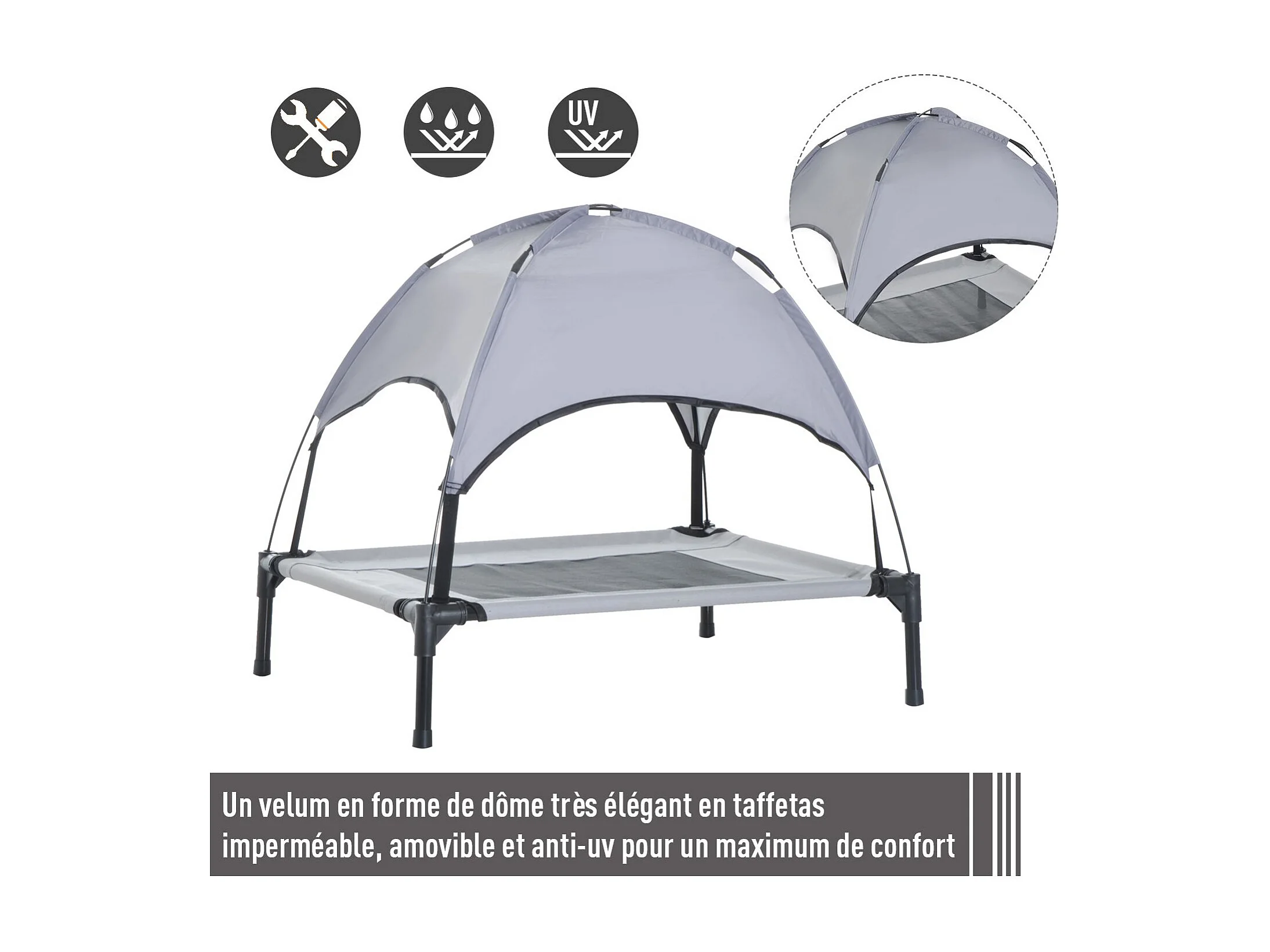 Lit pour chien chat ur pied lit de camp lit urélevé rafraîchiant velum anti-UV Oxford micro-perforé paraol et ac de tranport inclu dim. 92L x 76l x 90H cm gri noir