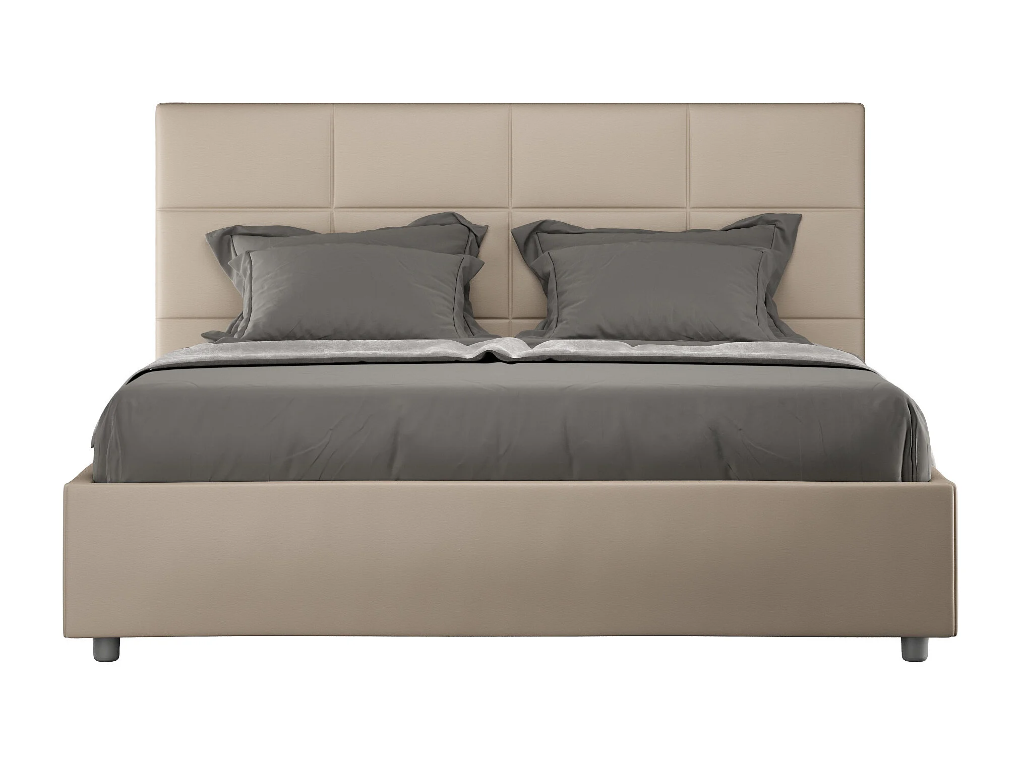 Lit avec sommier rembourré 160x190 similicuir taupe Mika