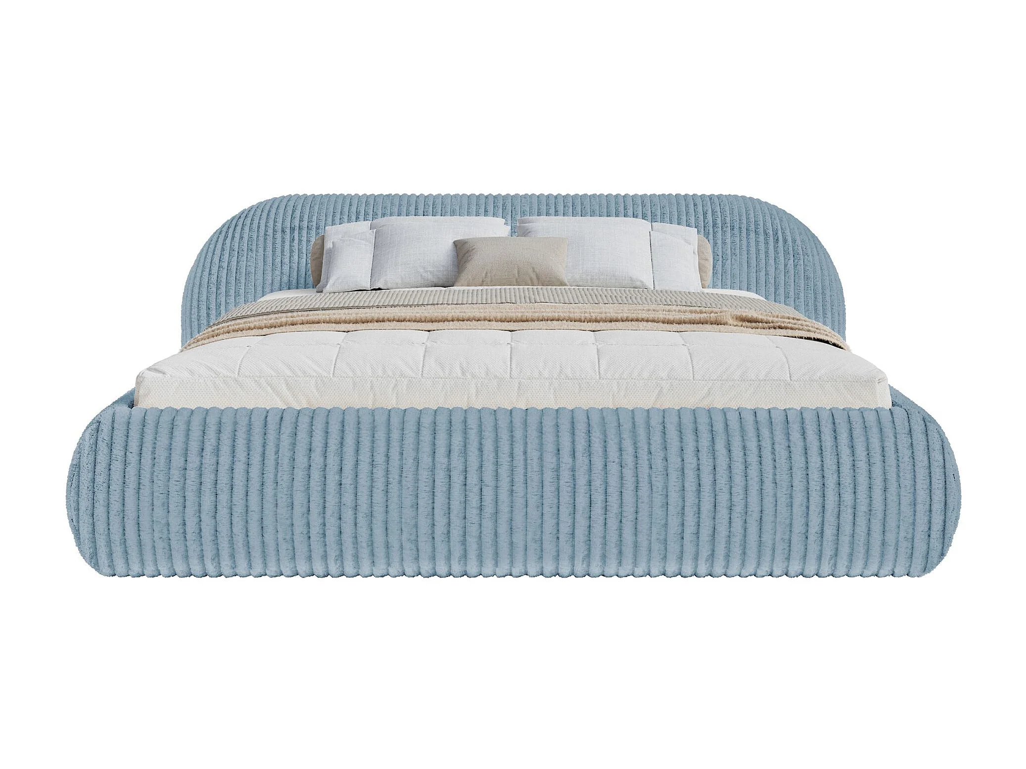 Lit rembourré 140x200 – avec coffre – en velours côtelé – bleu – SHELS LOW