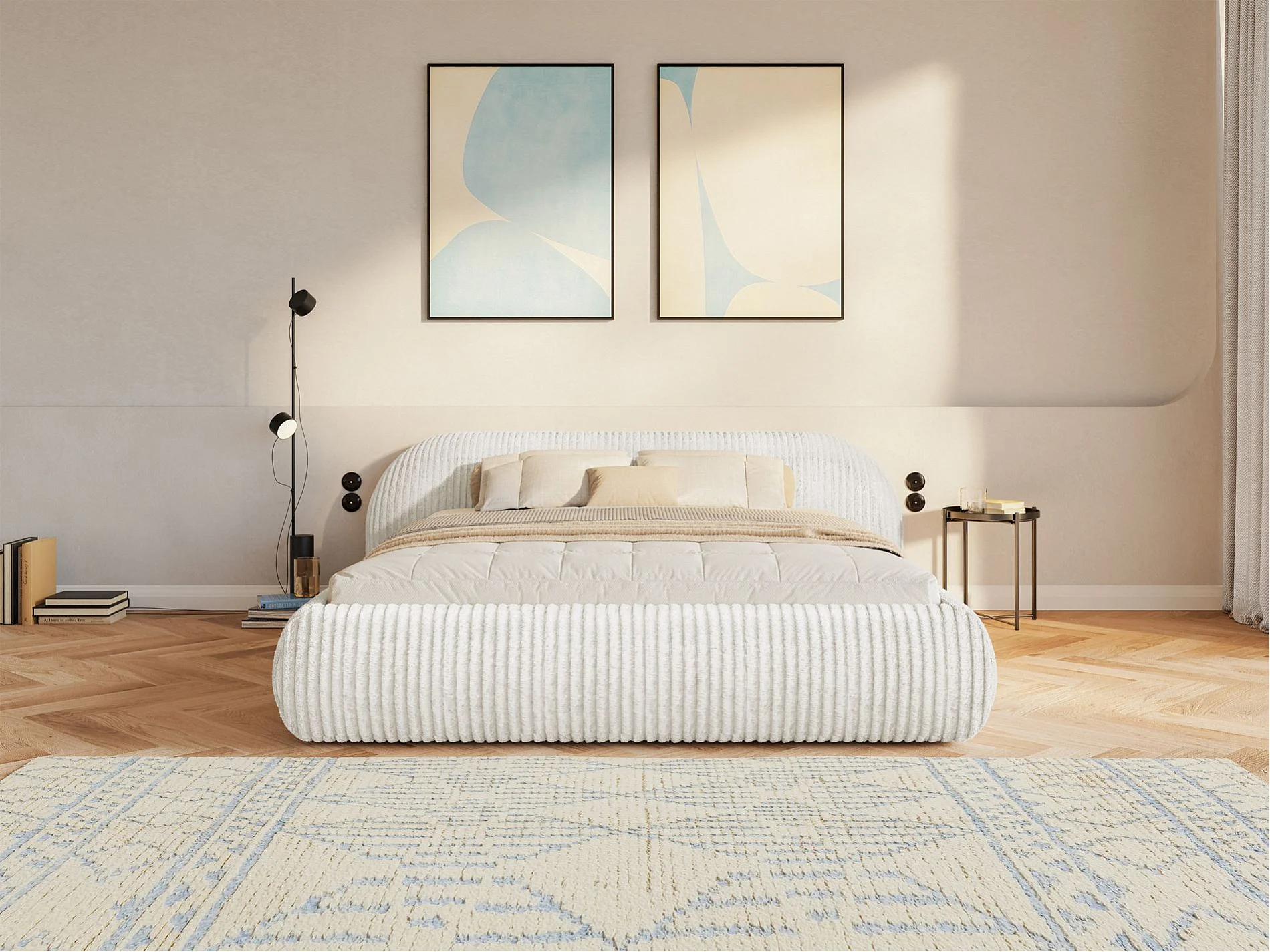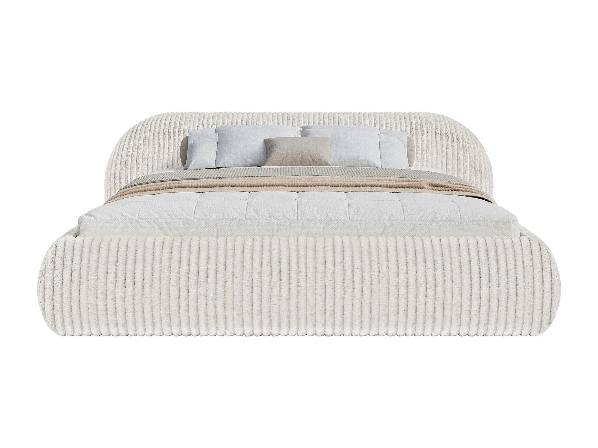 Lit rembourré 140x200 – avec coffre – en velours côtelé – gris clair – SHELS LOW